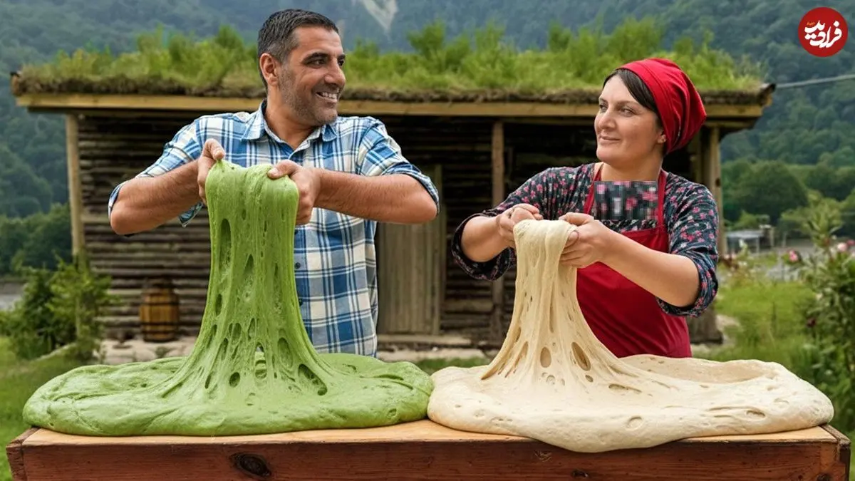 ببینید| غذای روستایی در آذربایجان؛ پخت نان سنتی با اسفناج در طبیعت روستا
