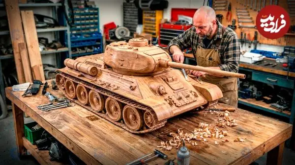 ببینید| مراحل ساخت ماکت تانک T-34 شوروی سابق با چوب توسط یک نجار آمریکایی