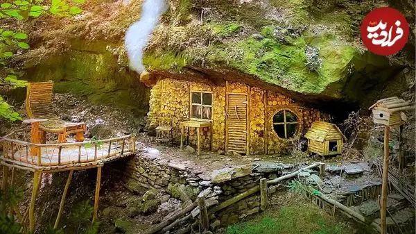 ببینید| روند ساخت یک کلبه زیبا در زیر صخره ای در جنگل های آلمان