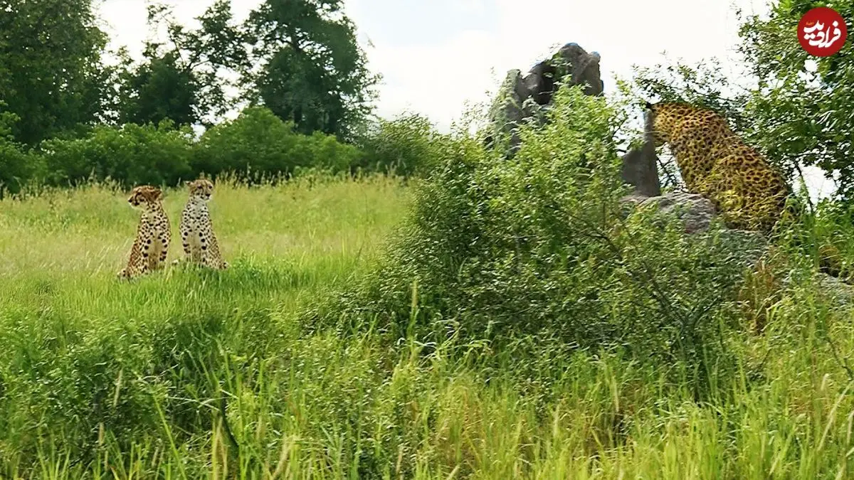 ببینید| تلاش شجاعانه یوزپلنگ ماده برای محافظت از توله اش در برابر پلنگ گرسنه