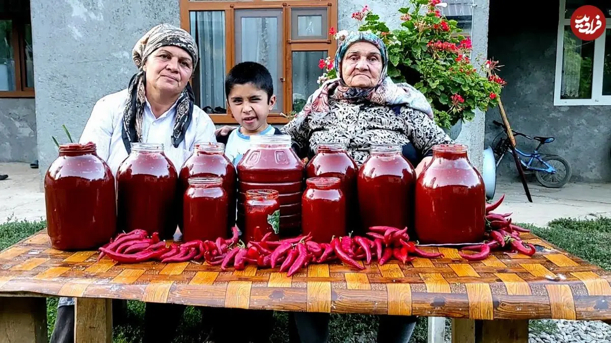 ببینید| غذای روستایی در آذربایجان؛ برداشت گوجه فرنگی از باغ و تهیه رب با آن