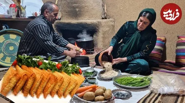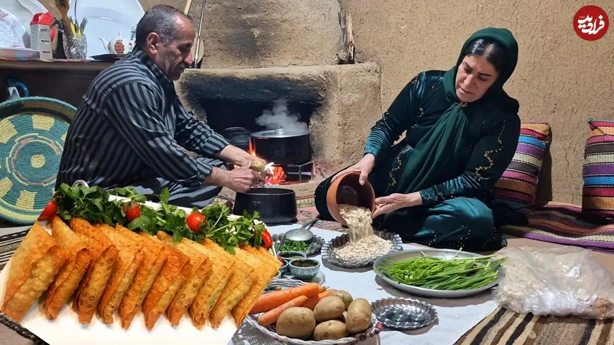 ببینید| غذای روستایی در ایران؛ تهیه سوپ سبزیجات و سمبوسه توسط زوج روستایی
