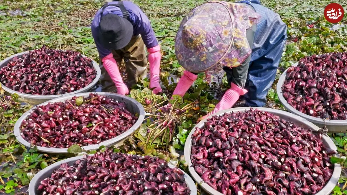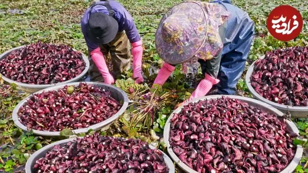 ببینید| روند برداشت صدها کیلو نیلوفر آبی، فرآوری و پخت غذاهای متنوع با آن ها در چین