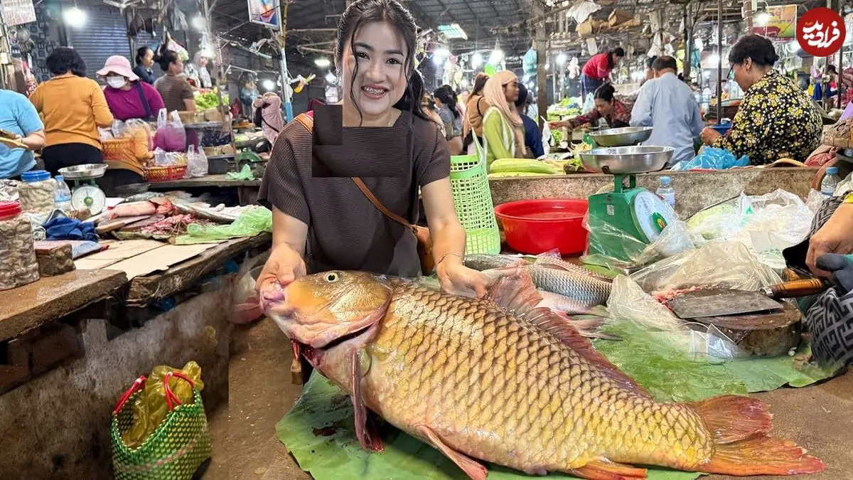ببینید| غذای روستایی در کامبوج؛ طبخ غذا با ماهی طلایی بزرگ و به 2 روش