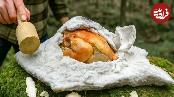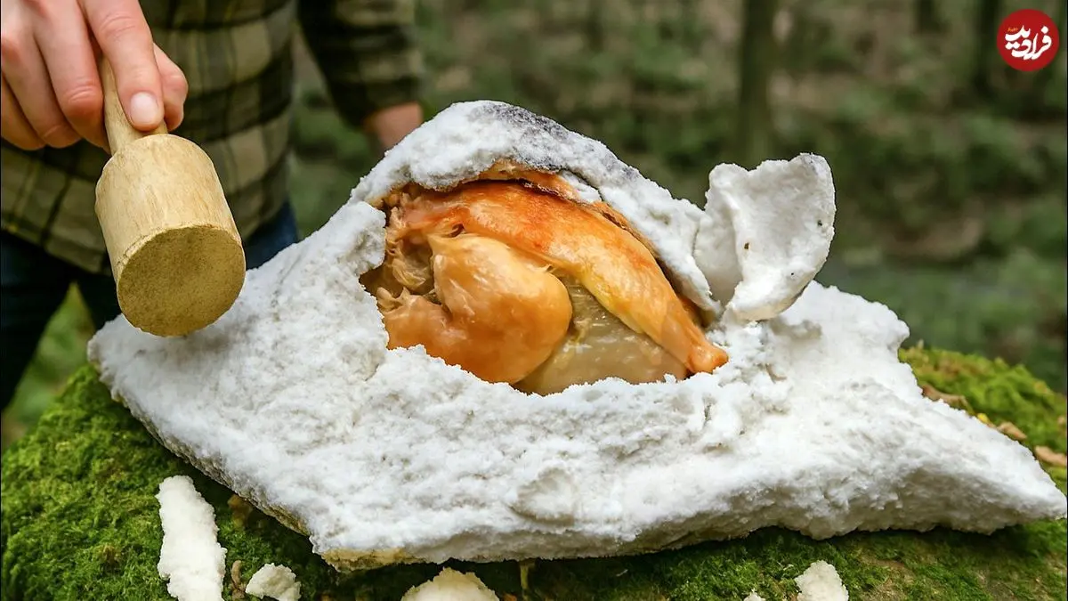 ببینید| غذای روستایی در سوئیس؛ پخت مرغ کامل در لایه ای از نمک و در جنگلی زیبا