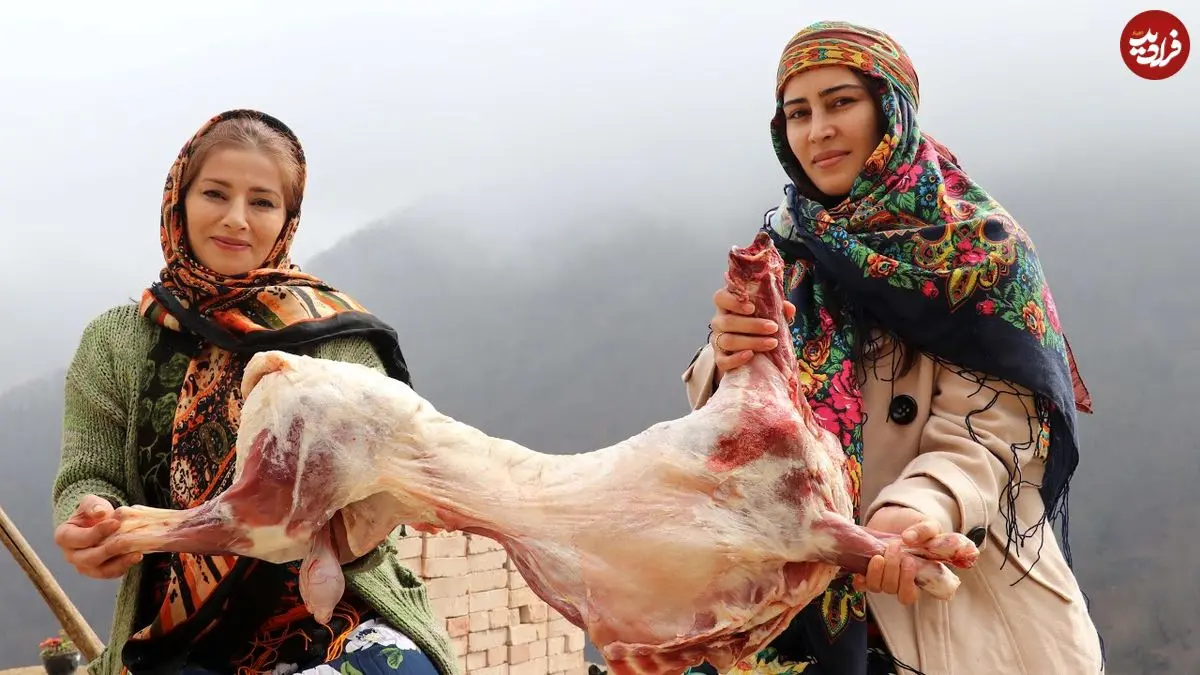 ببینید| غذای روستایی در ایران؛ کباب کردن بره کامل روی آتش و در هوای مه آلود روستا