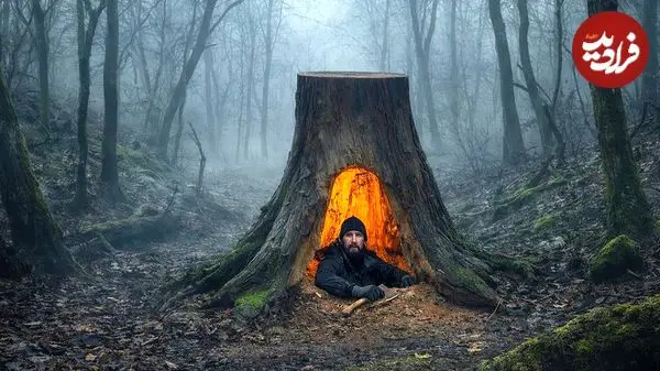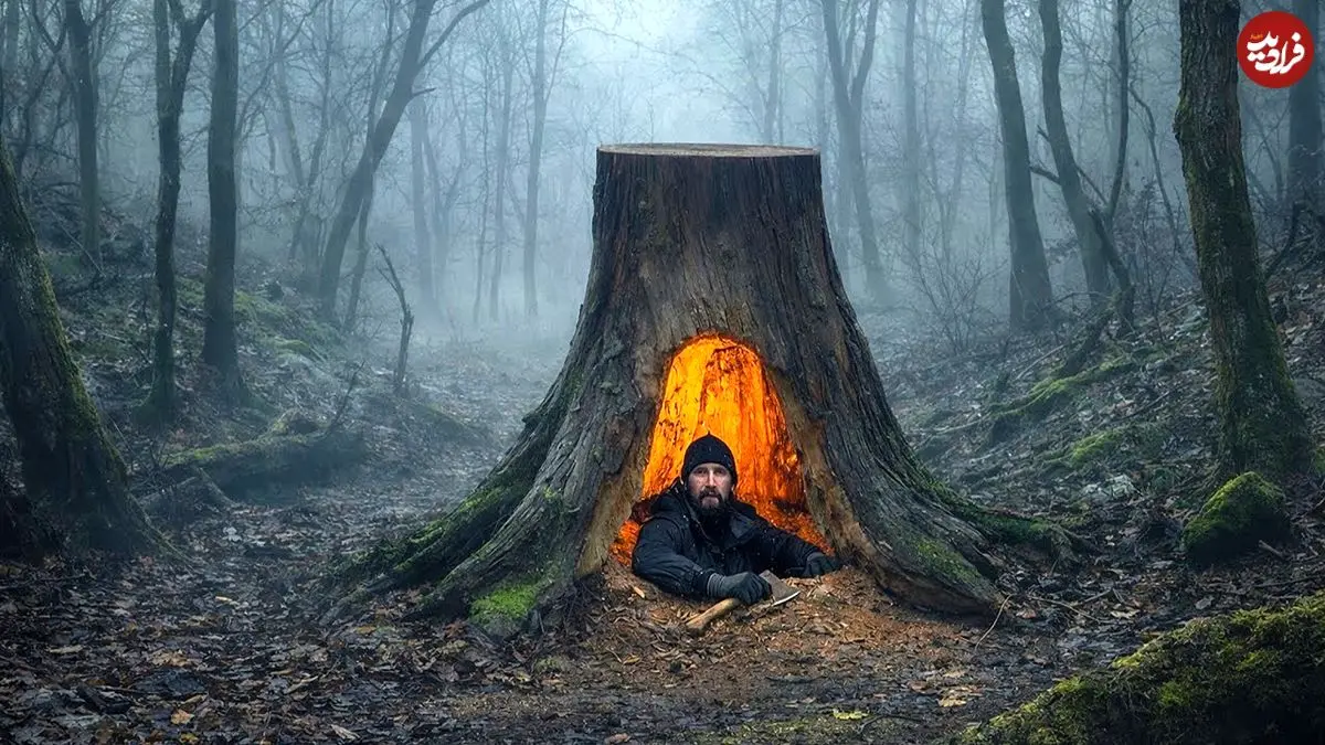 ببینید| مراحل صفر تا صد ساخت پناهگاه مخفی زیر تنه یک درخت در جنگل های آلمان