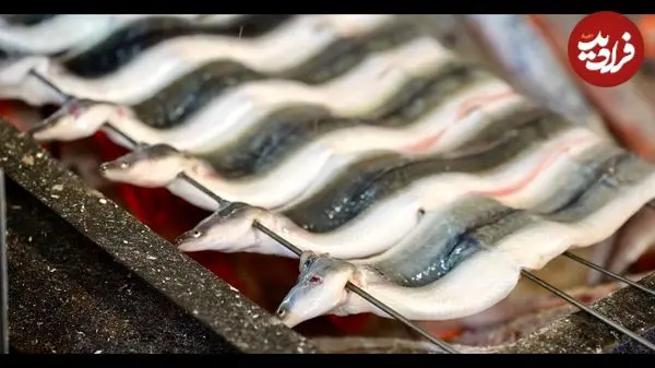 ببینید| غذای خیابانی در ژاپن؛ مهارت آشپز خیابانی در برش و کباب کردن مارماهی در توکیو
