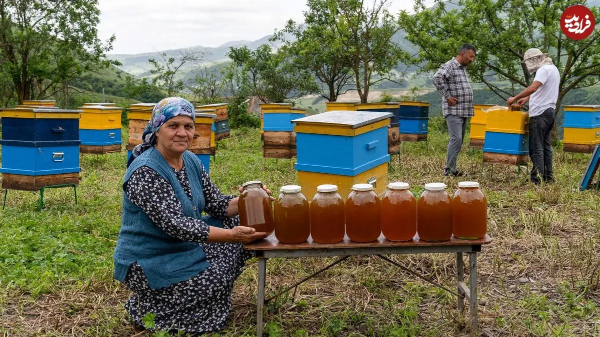 ببینید| غذای روستایی در آذربایجان؛ جمع آوری عسل تازه و پخت کیک با آن در روستا