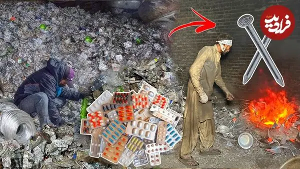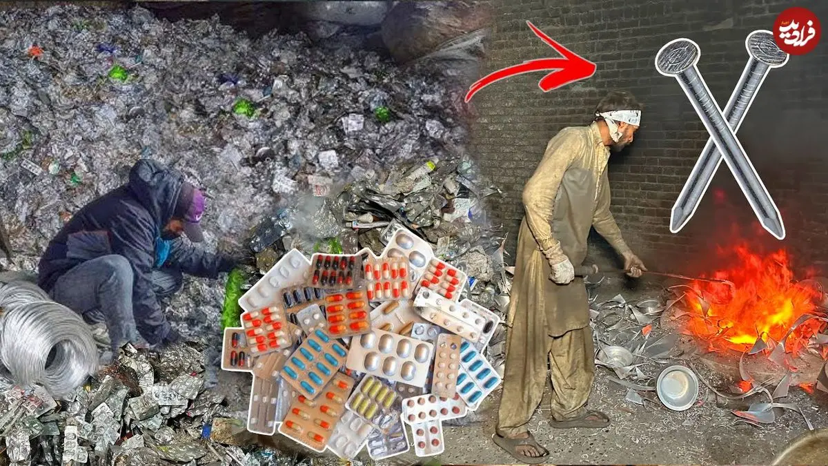 ببینید| مراحل دیدنی بازیافت جلد قرص و تولید میخ با آن ها و در پاکستان