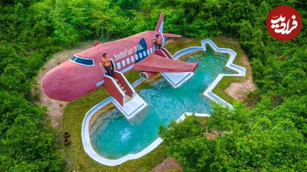 ببینید| مراحل ساخت یک ویلا شبیه هواپیما همراه با استخر در جنگل های کامبوج