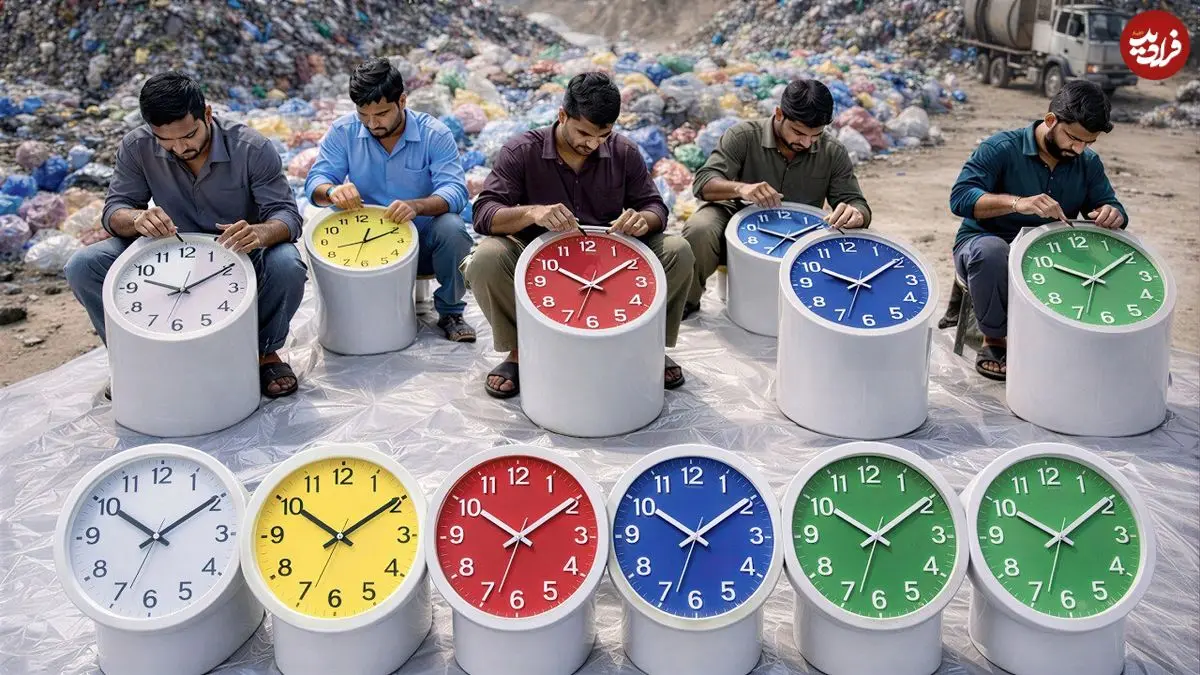 ببینید| مراحل دیدنی ساخت ساعت دیواری از طریق بازیافت ضایعات پلاستیکی در پاکستان
