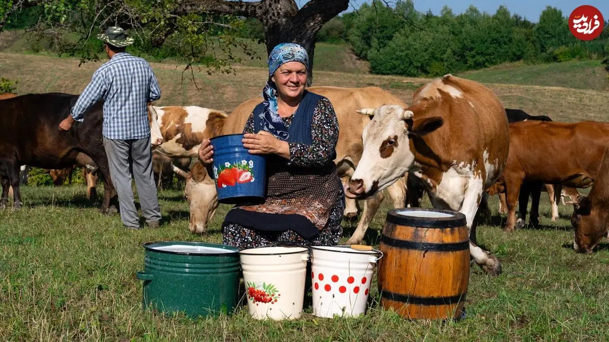 ببینید| غذای روستایی در آذربایجان؛ تهیه پنیر خامه ای با شیر تازه گاو