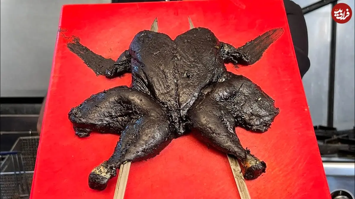 در این ویدئو یک آشپز مشهور اهل ایران را می بینید که به روشی جالب یک مرغ سیاه را کباب می کند.