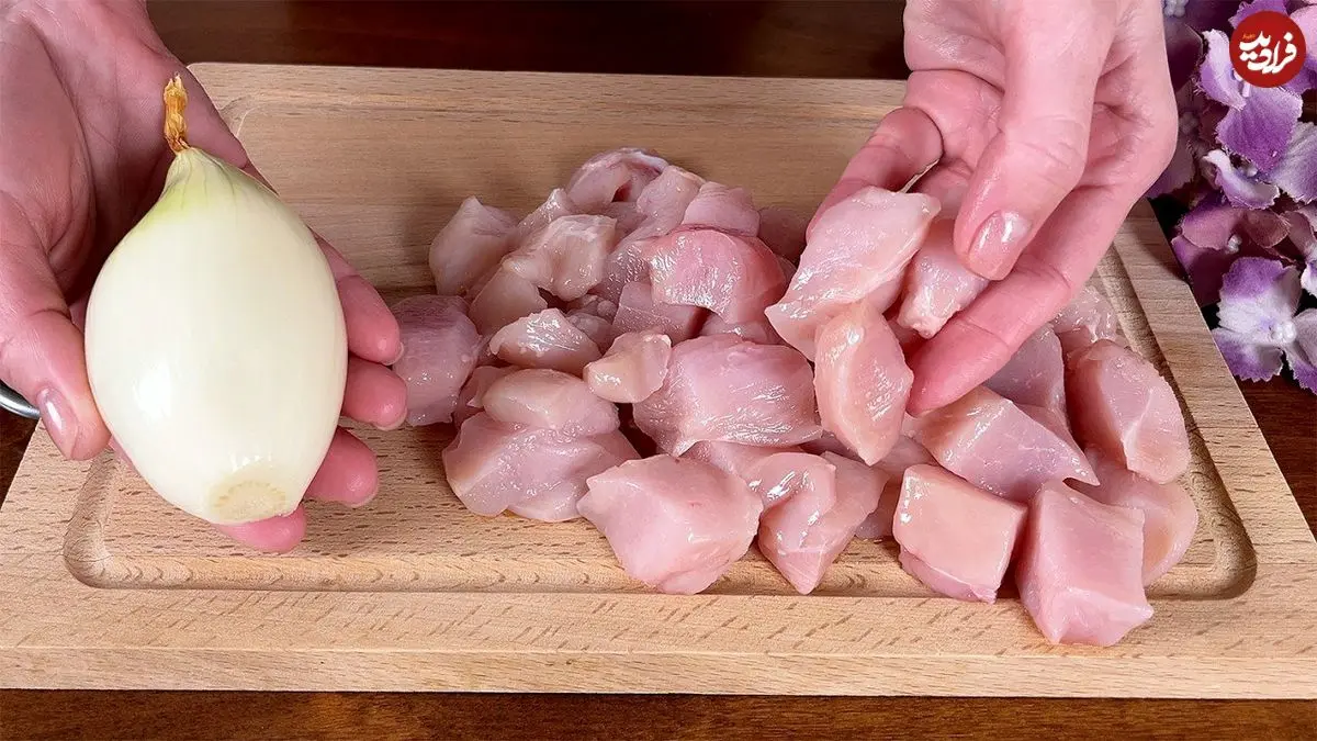 ببییند| طرز تهیه یک غذای ساده با سینه مرغ و پیاز