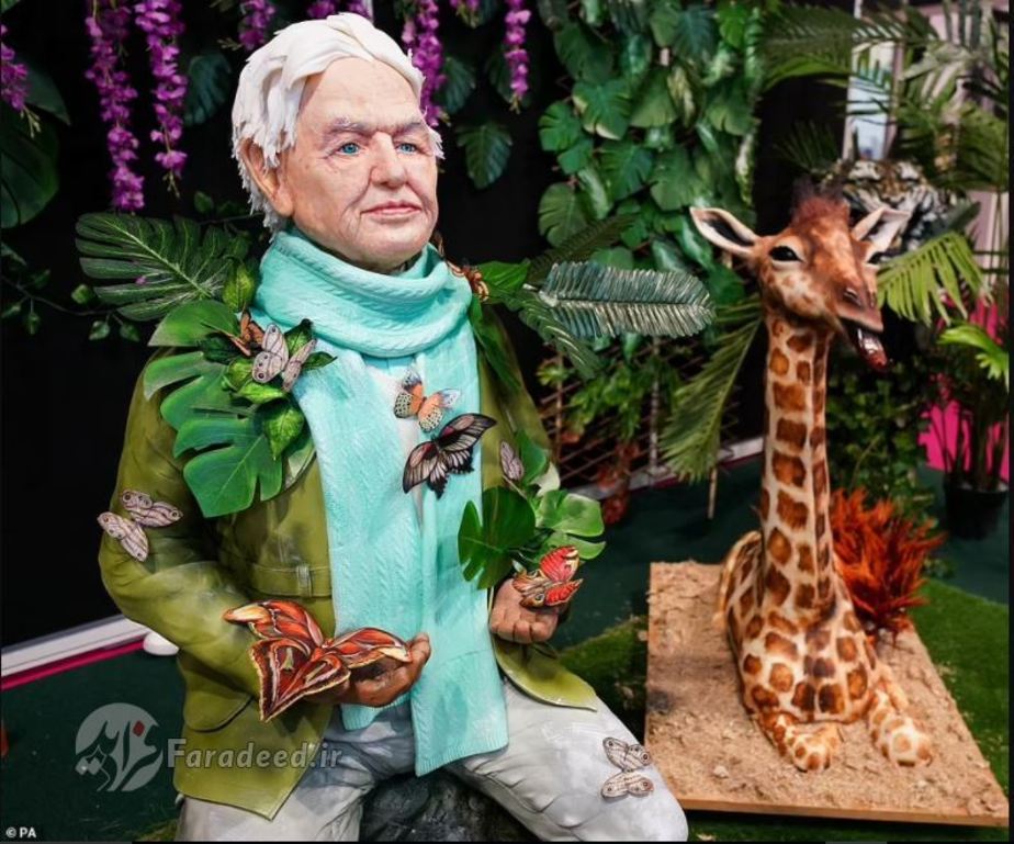 استفانی وود، ۳۷ساله، کیکی از دیوید اتنبورو در حیاتوحش را ساخته است. او و تیم چهار نفرهاش این کیک را به این طبیعتگرای اهل بریتانیا که در ماه مه تولد ۹۵سالگیاش را جشن گرفت، اهدا کردهاند.