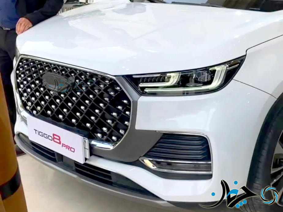 همانطور که از تصویر نمونه وارد شده به کشور معلوم بوده، در نمای جلو تیگو ۸ پلاس شاهد تعویض سپر و جلوپنجره هستیم. میتوان گفت که طراحان چری، در این قسمت، از خودرو آئودی Q۸ الهام گرفته اند.