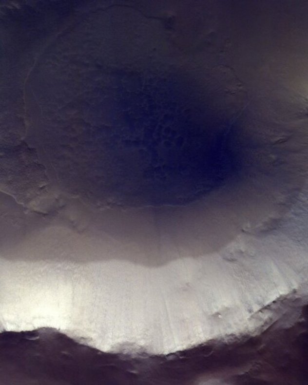 یخبندان به وضعیت جوی گفته میشود که آب در مرحله نقطه انجماد یا زیر نقطه انجماد باشد. یخبندان آب باعث خرد شدن سنگ و خاک میگردد. این دهانه با قطر ۱۱ کیلومتر در دشتهای شمالی مریخ در شمال کوه آلبا واقع شده است. کوه آلبا (Alba Mons) کوهی عظیم و آتشفشانی بر سطح سیاره مریخ است که در شمال منطقه تارسیس واقع شده است.
