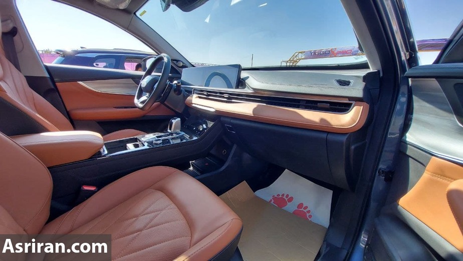 جلوپنجره این خودرو که حالت الماس گونه دارد جلوه خاصی به آن داده و حس یک شاسی بلند به روز را تداعی میکند. با ورود به داخل تیگو ۸ پرو صفحه نمایش بزرگ "۱۲.۳ + ۱۲.۳ که در مجموع ۲۴.۶ اینچ میشود بیشترین چیزی است که در نمای داخلی جلب توجه میکند.