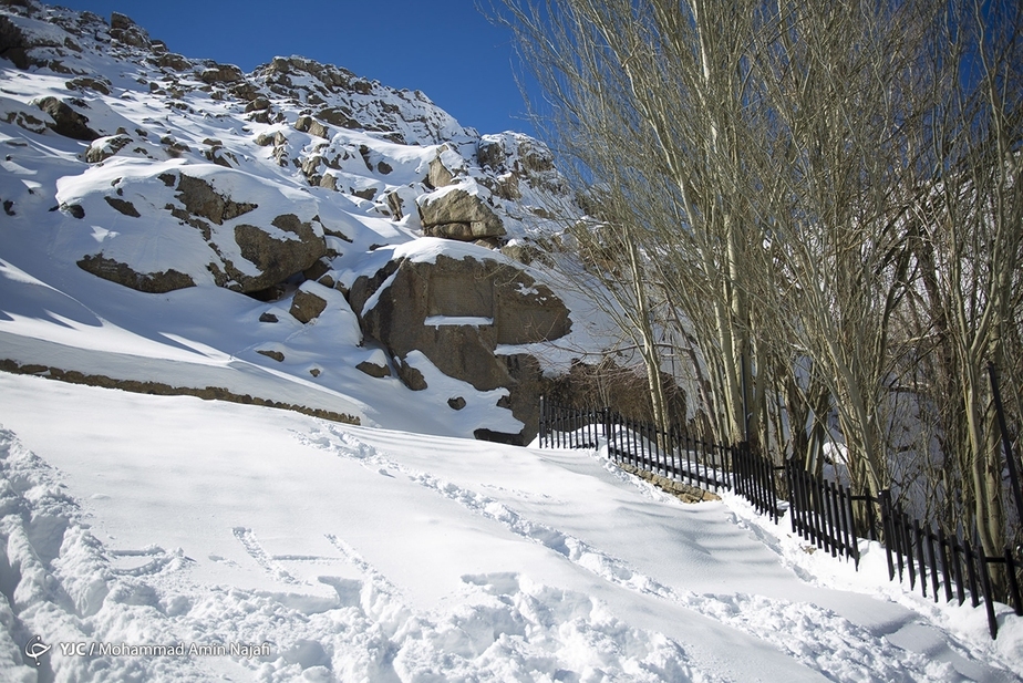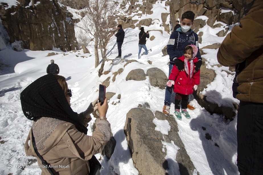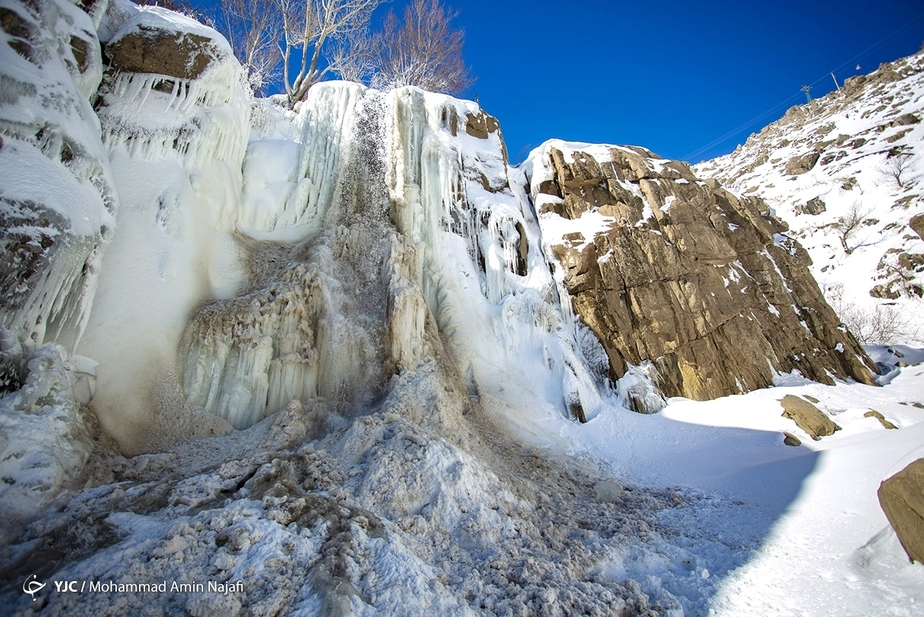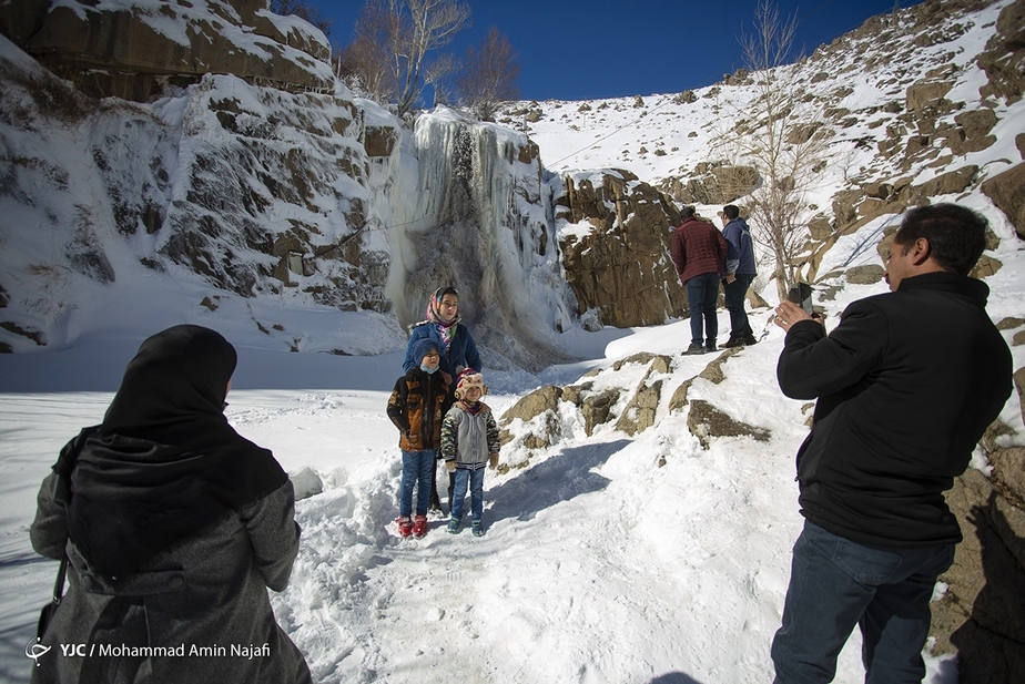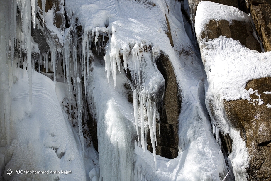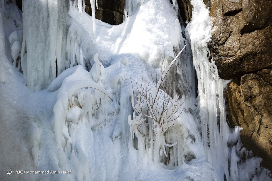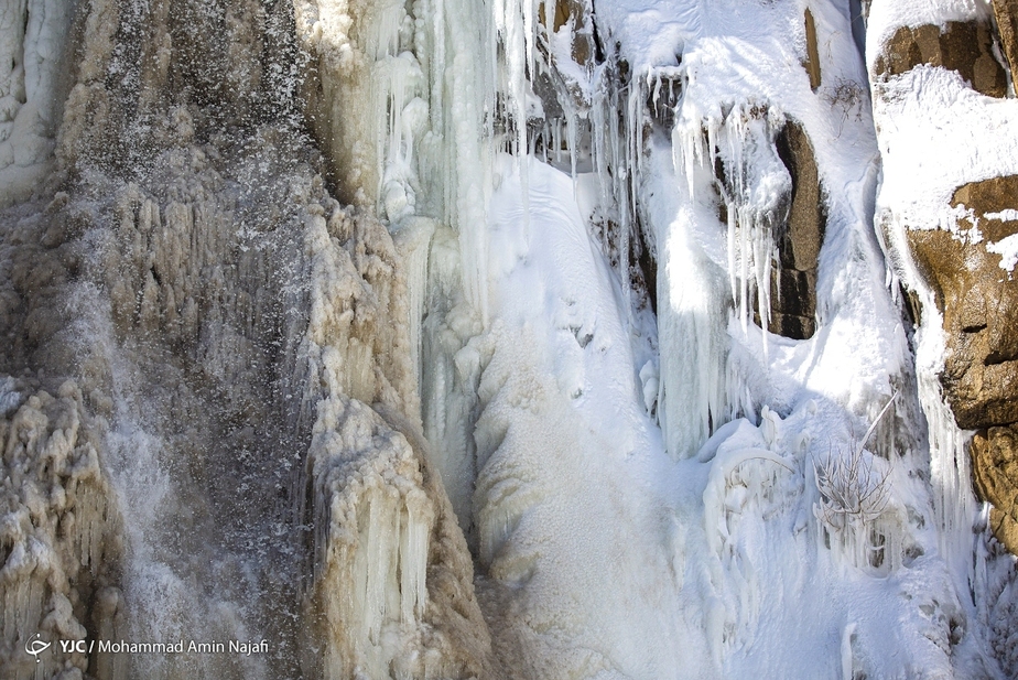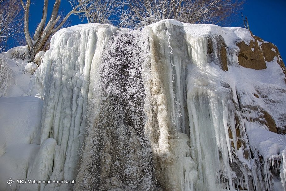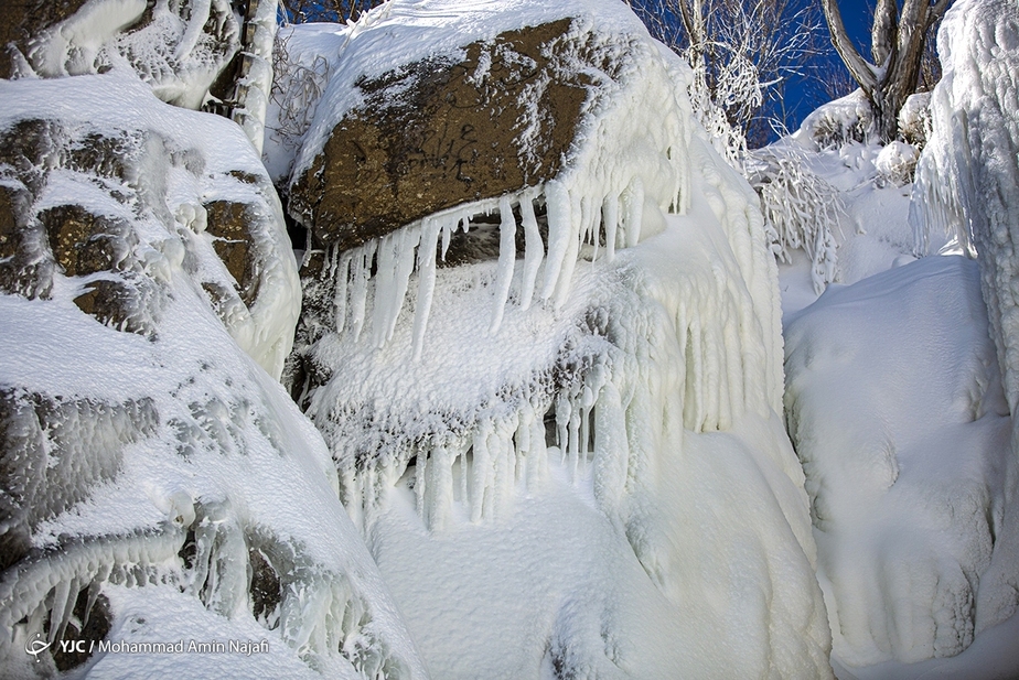 تصاویر/ جلوه زیبای آبشار یخ زده گنجنامه در همدان