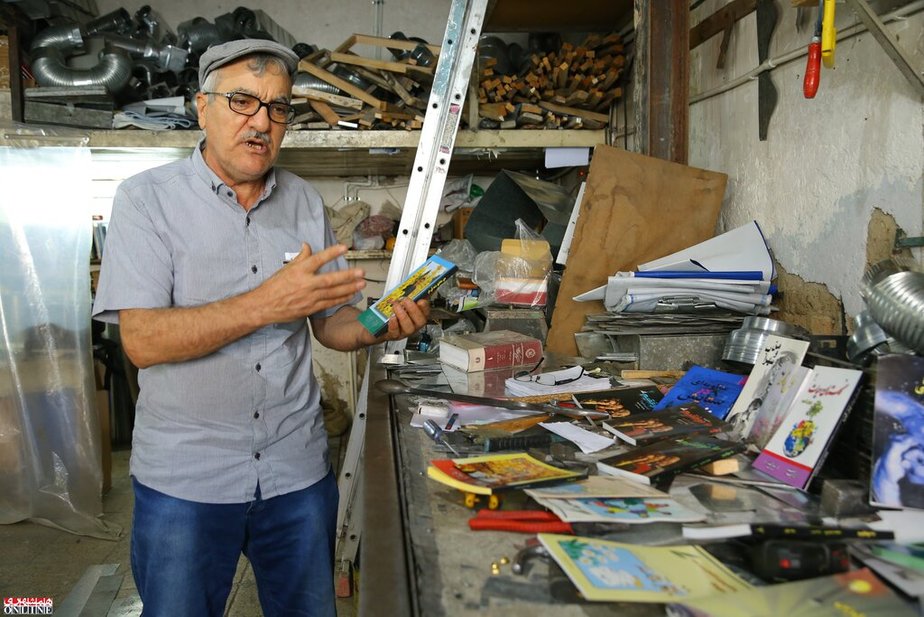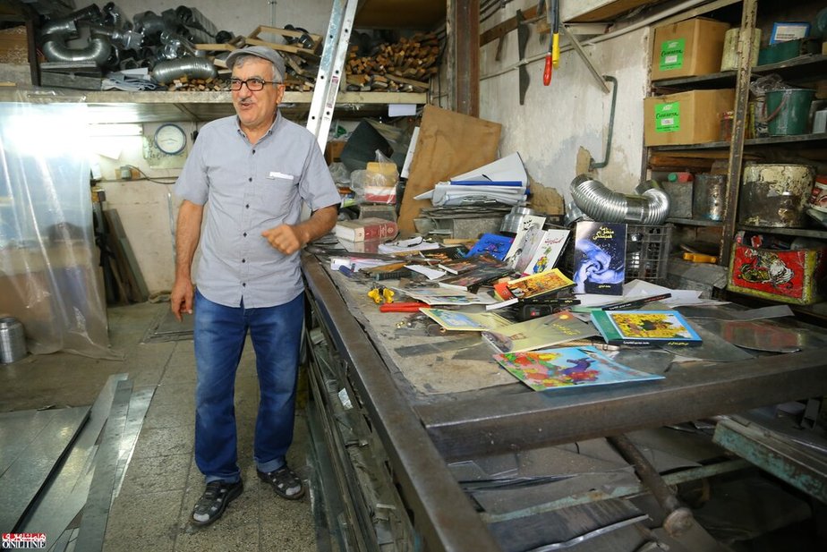 استاد «محمد حیدری»، شاعر و نویسنده ساکن شهرک، ولی عصر (عج)، یکی از متفاوتترینها در میان اهالی قلم است. وقتی وارد مغازهاش میشوید تا چشم کار میکند وسایل و ابزارهایی میبینید که از حرفهای مردانه و محتاج زور بازو حکایت میکند: از ورقهای گالوانیزه سنگین تا قیچی برش و چکش و...