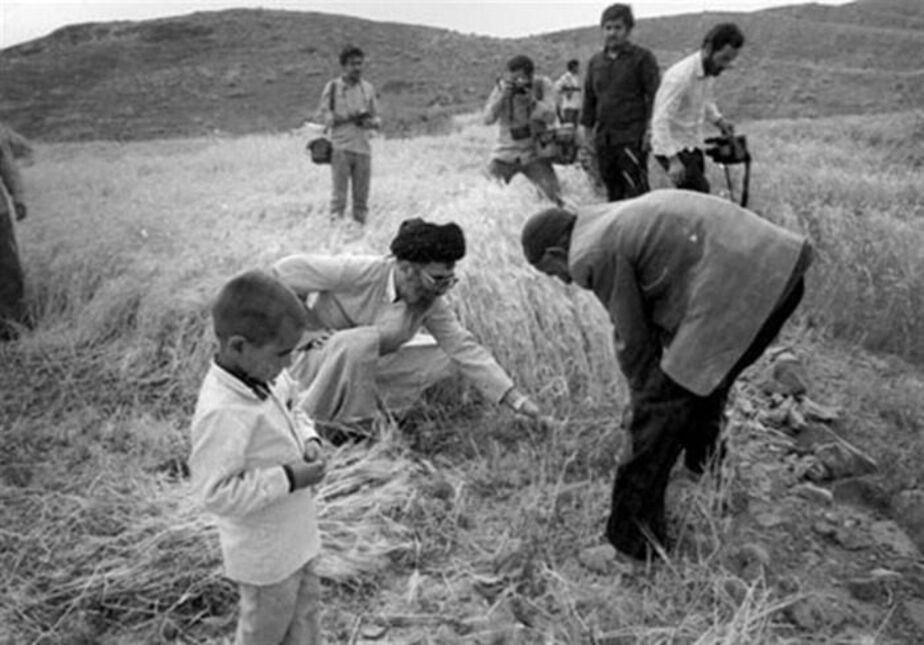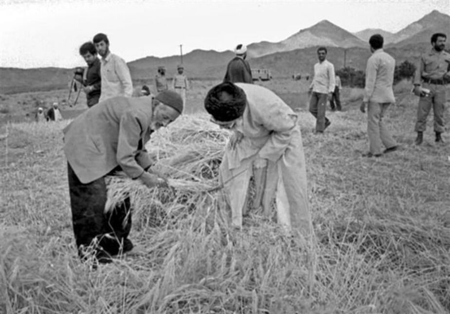 عکسهایی از آیت الله خامنهای در مشارکت در درو گندم در سال ۱۳۶۵ را ببینید.