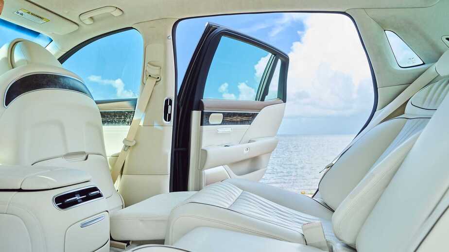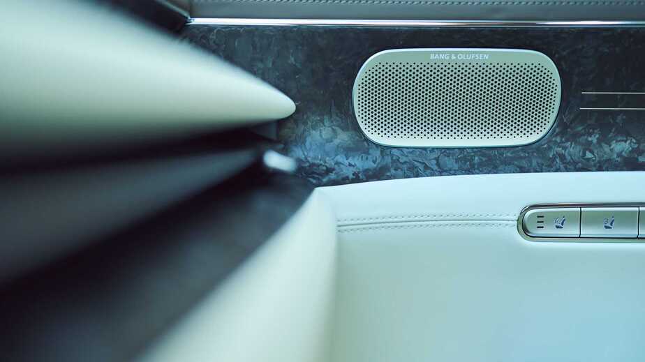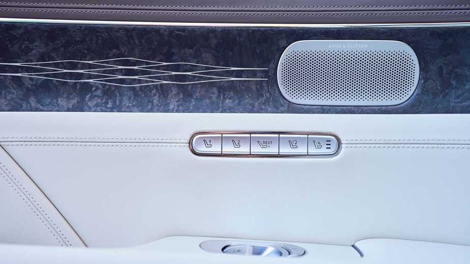 اینجا شباهتها و الگوبرداریهایی از مرسدس بنز قابل مشاهده است. اما جزئیات حقیقتا بی نظیر هستند، از جمله سیستم صوتی با ۲۶ اسپیکر از برند حرفهای بنگ اند اولافسن، نمایشگر ۸ اینچی لمسی برای ردیف عقب با امکان تنظیم سیستم تهویه و صوتی، صندلیهای برقی، نمایشگر ۱۲.۳ اینچی اطلاعات کیلومتر، نمایشگر ۱۲.۳ اینچی تنظیمات سیستم سرگرمی و ...