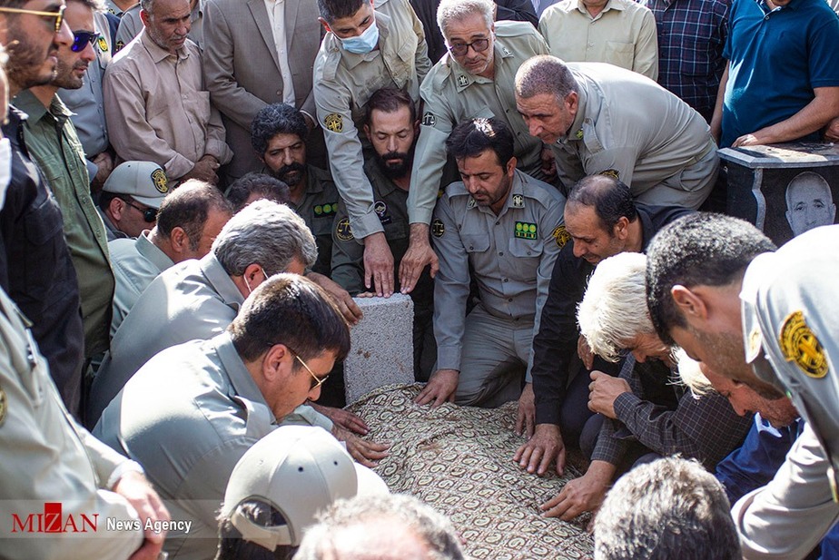 مراسم خاکسپاری محیط بان برومند نجفی عصر دوشنبه (۲۴مرداد) با حضور جمعی از محیط بانان و مسئولان در زادگاهش روستای چالابه کرمانشاه برگزار شد:
