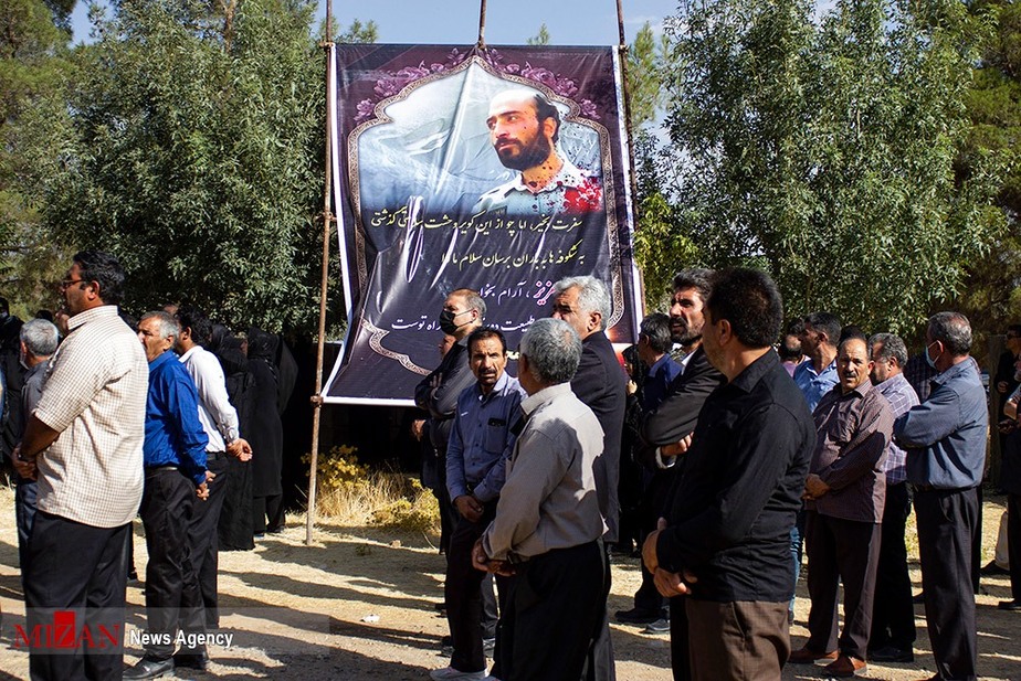 مراسم خاکسپاری محیط بان برومند نجفی در روستای چالابه کرمانشاه برگزار شد.