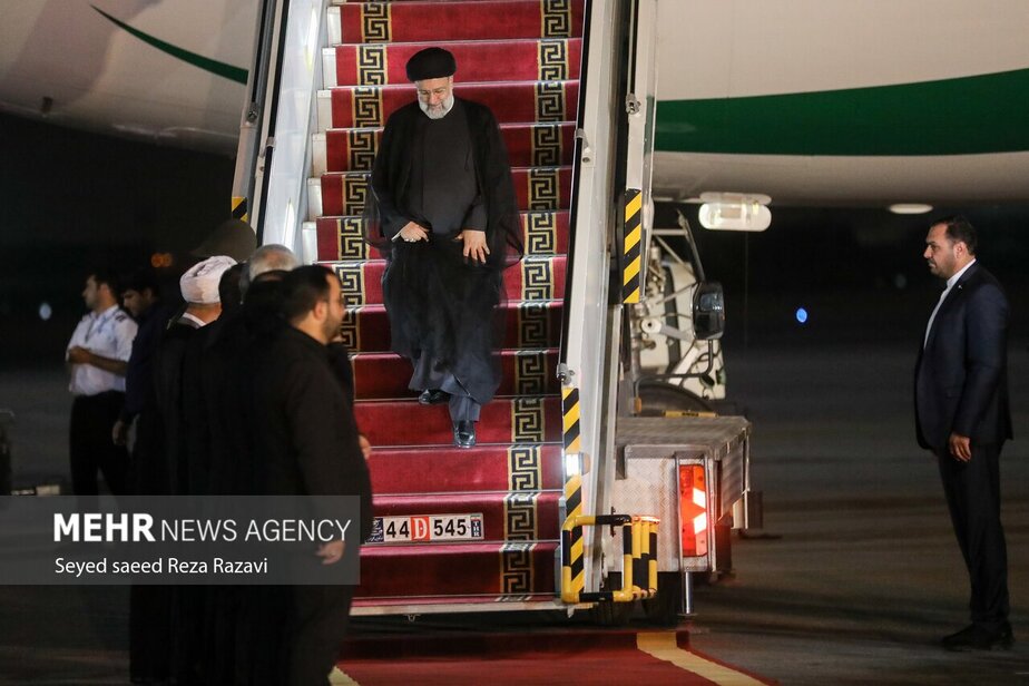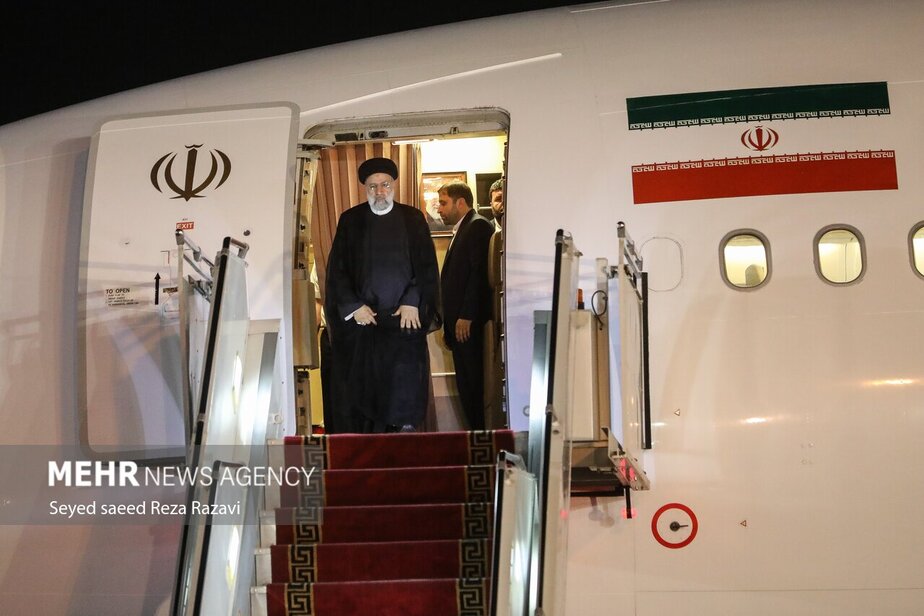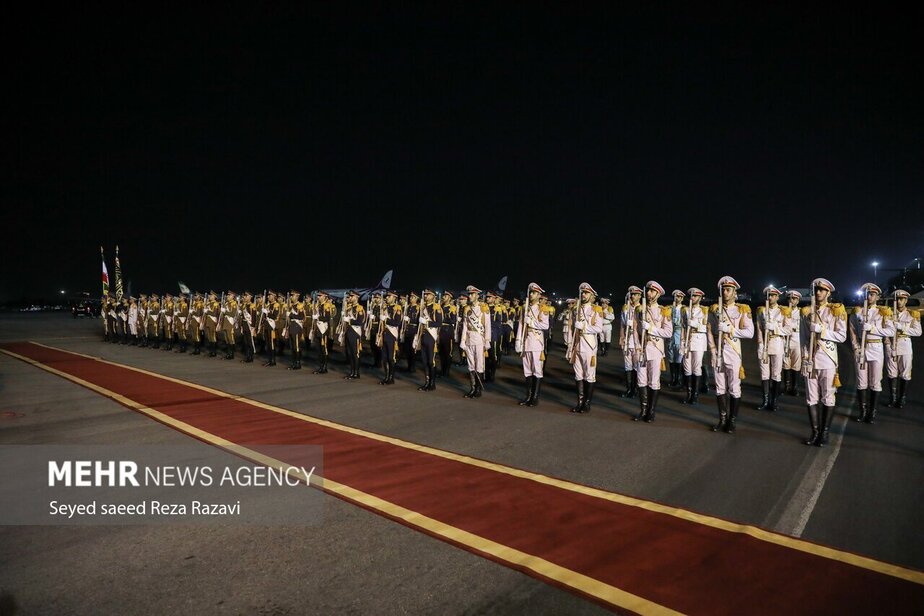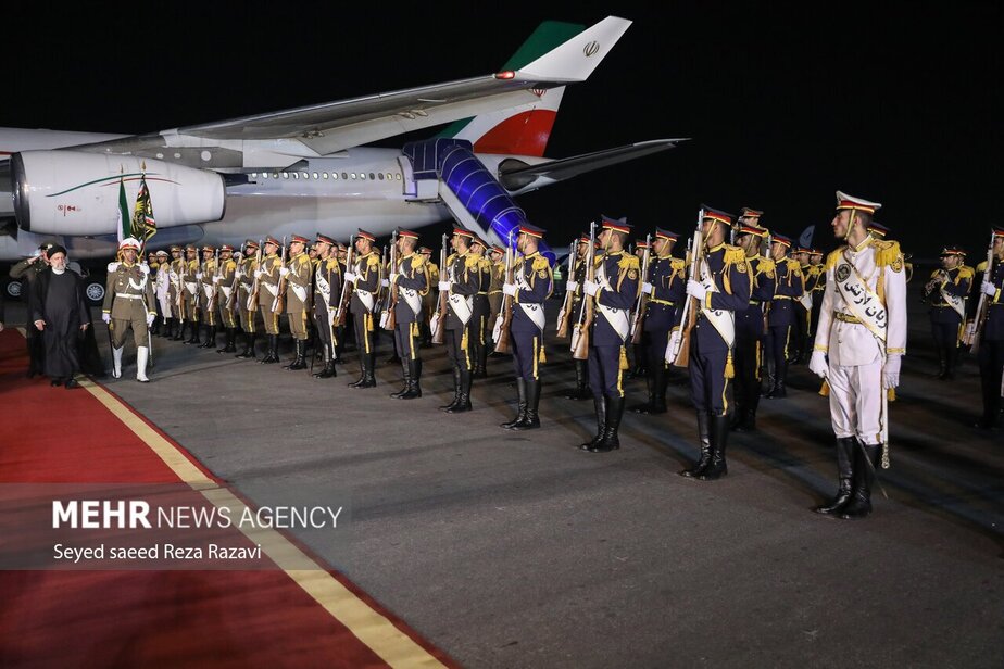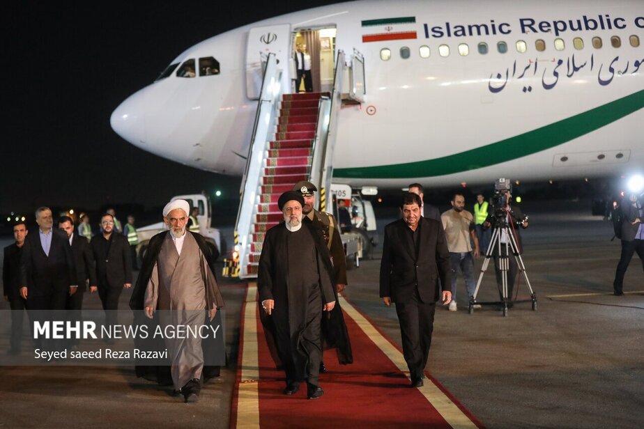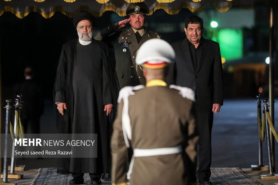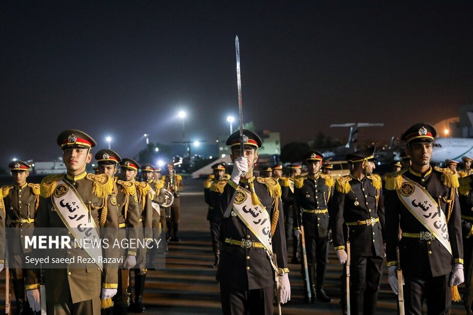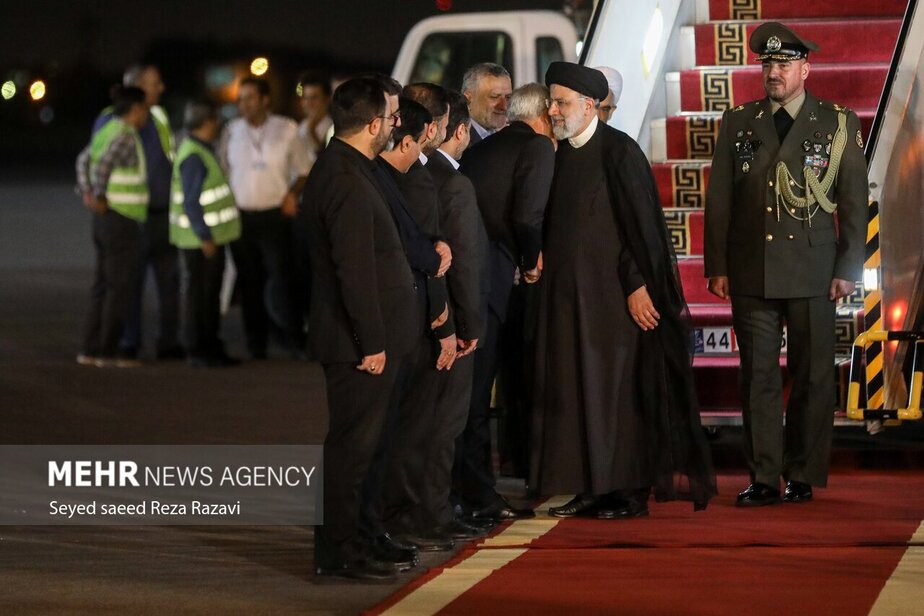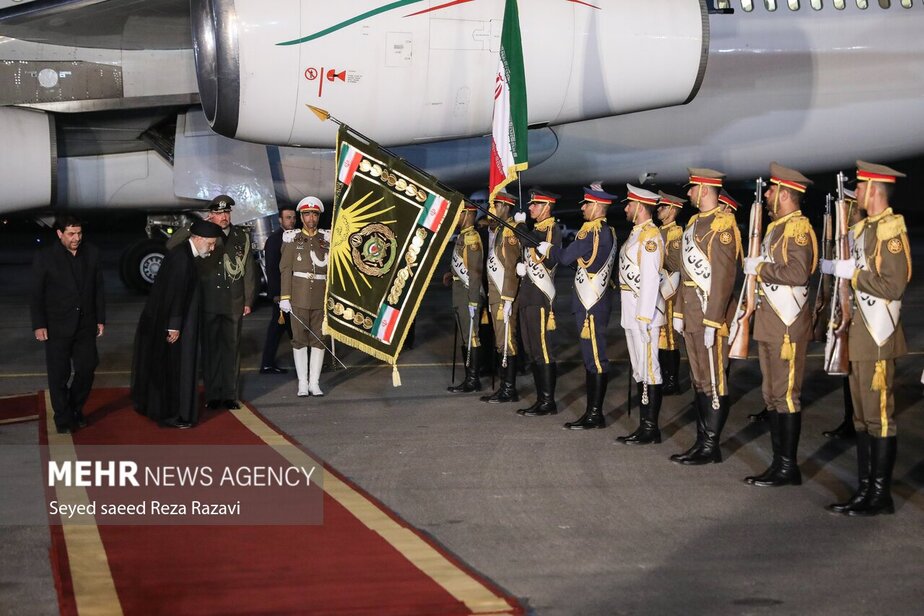 مراسم استقبال رسمی از حجت الاسلام سید ابراهیم رئیسی، رئیس جمهوری اسلامی ایران در بازگشت از نیویورک شامگاه روز جمعه ۱ مهرماه ۱۴۰۱ در پایون جمهوری فرودگاه مهرآباد برگزار شد.