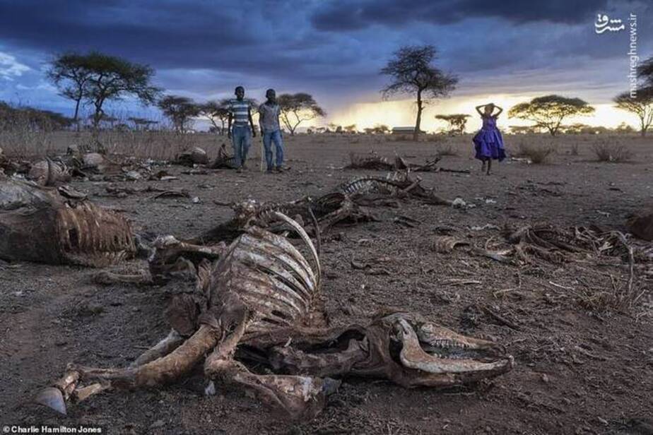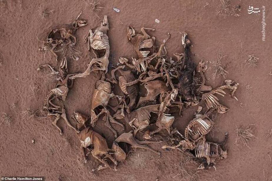 لاشه حیواناتی که در اثر خشکسالی در جنوب کنیا جان خود را از دست دادهاند را در ادامه میبینید:
