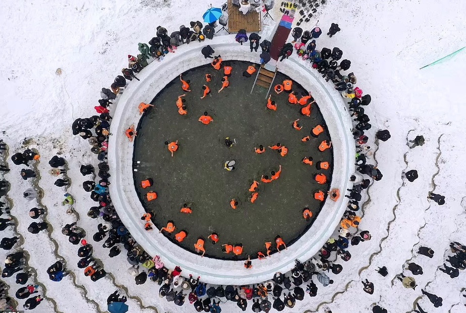 (عکس + فیلم) جشنواره دیدنی ماهیگیری روی یخ در کره جنوبی