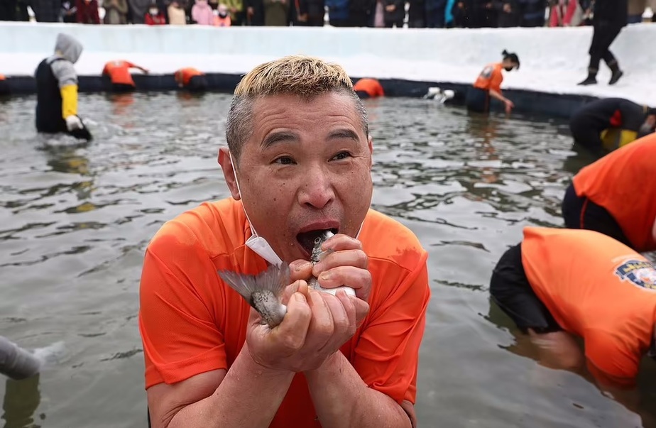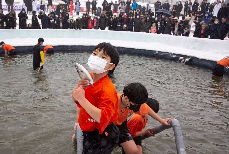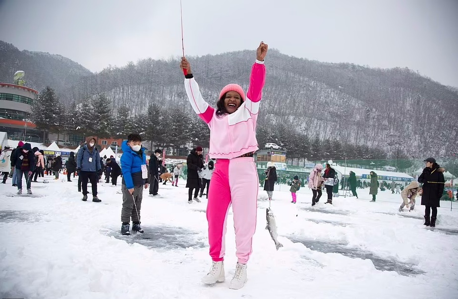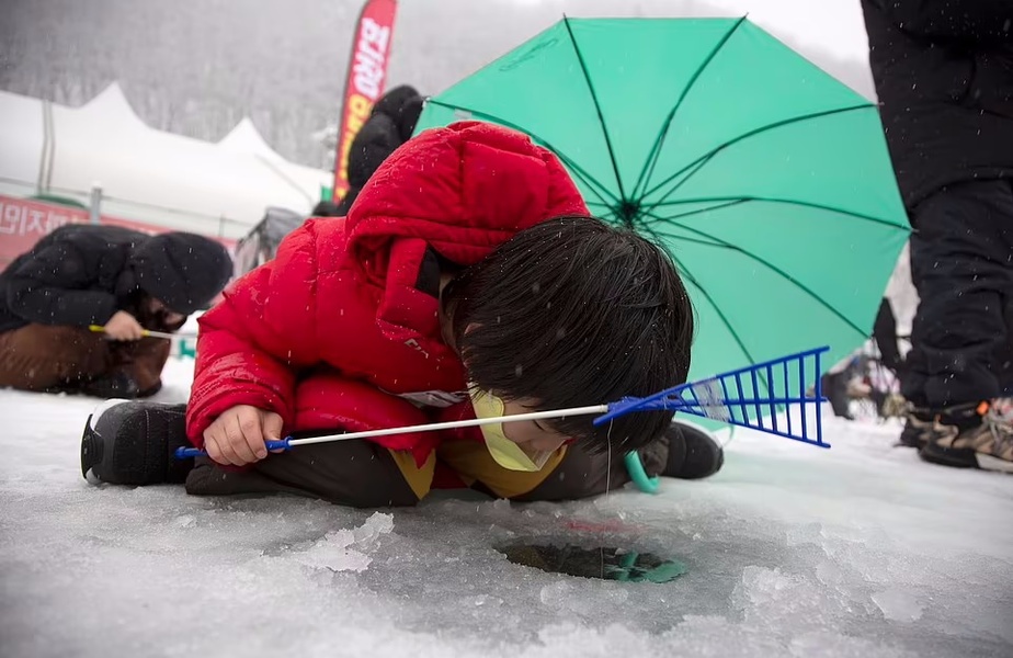 بازدیدکنندگان از سرتاسر جهان به جشنواره سانچئونئو هواچئون (Hwacheon Sancheoneo Festival)، که یک جشنواره ماهیگیری روی یخ در کره جنوبی است میروند تا از سوراخهای ایجاد شده در رودخانه یخ زده، ماهی قزل آلا صید کنند. امسال هم هزاران گردشگر برای صید ماهی با قلاب یا حتی دستان خالی در این جشنواره سالانه ماهیگیری به کره جنوبی هجوم بردهاند.