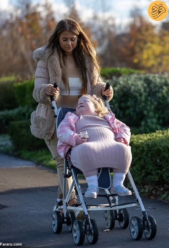 هالی ویلیامز، ۲۵ ساله، اهل بریتانیا، برای اینکه دخترش هارلو نتواند بیش از حد غذا بخورد، در مقابل آشپزخانه مانع قرار داده است.