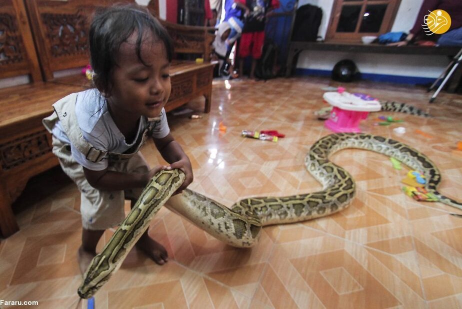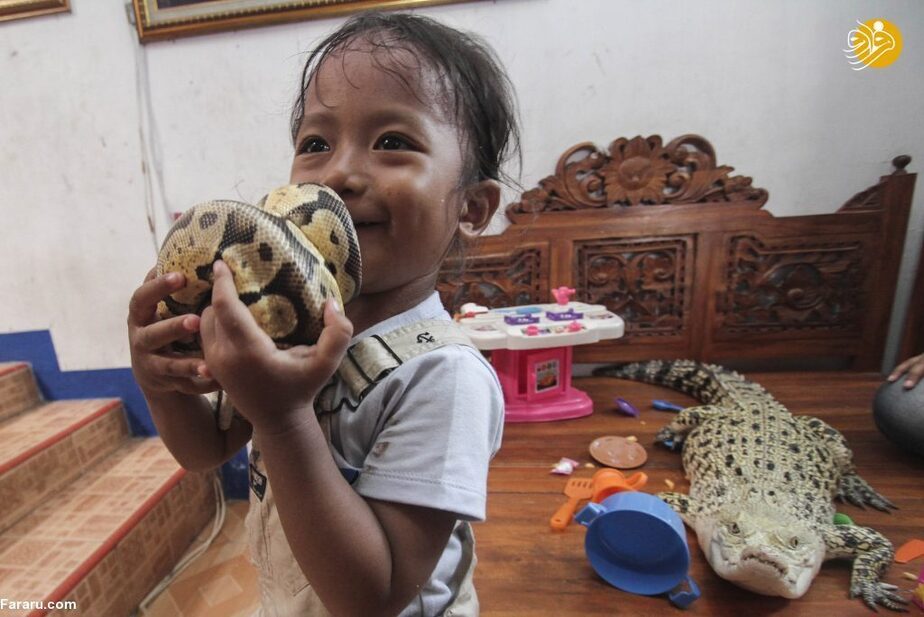 (تصاویر) تمساح و مار پیتون همبازی دختر ۳ ساله!