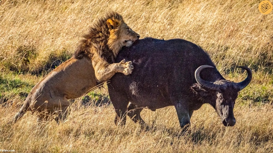 نیک دیل عکاس حیات وحش ۵۴ ساله توانست کل صحنه را تماشا کرده میگوید: نمیتوانستم ببینم چه اتفاقی دارد میافتد، به وضوح میتوانستیم شیری را ببینیم که فقط ۱۰ یارد آنطرفتر، گرده گاومیش را گرفته است!