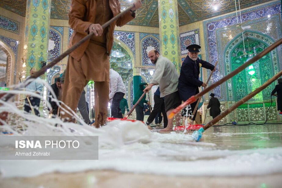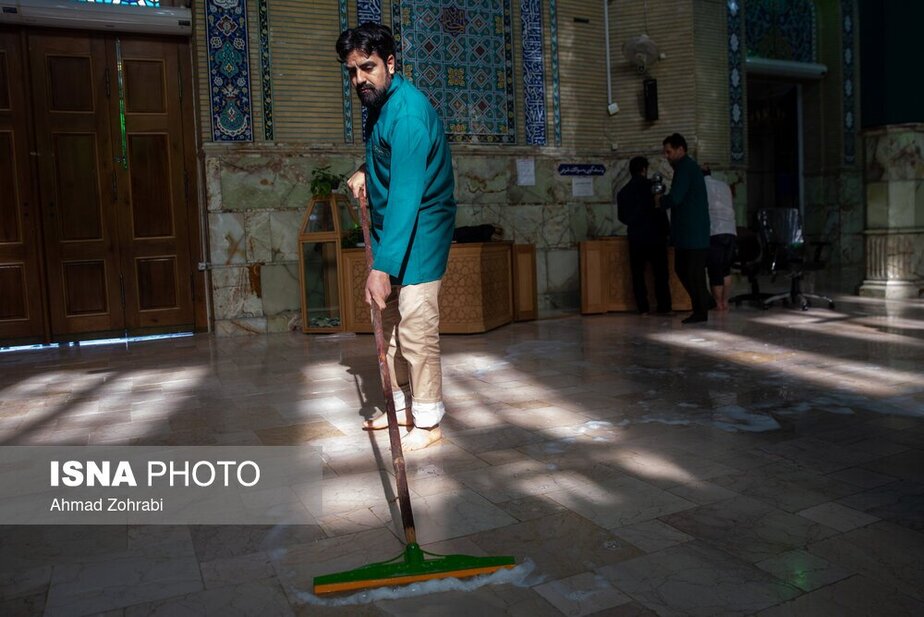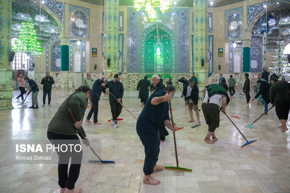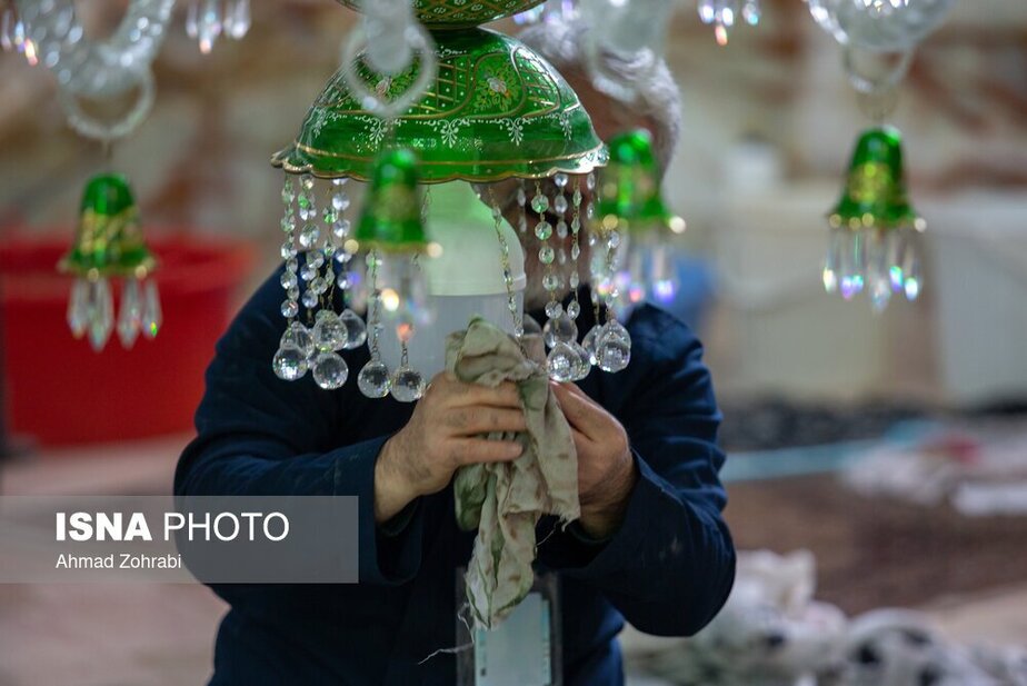 (تصاویر) غبارروبی مسجد مقدس جمکران در آستانه نیمه شعبان