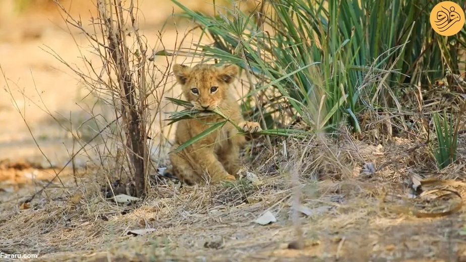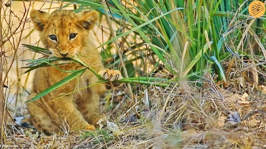 (ویدئو) بچه شیر طرد شده علفخوار شد!