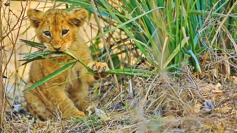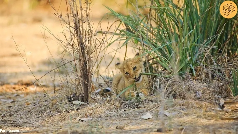 ناامیدی را میتوان در چشمان کوچک و درخشان این توله شیر دید. او به جای پذیرش شکست، شروع به کاوش در اطراف خود کرد و به طور ناپایدار روی پنجههای کوچک خود میچرخید. او را تماشا کردم که بازیگوشانه روی دستههای علف میپرد و کمی کنجکاو ساقههای علف میخورد.