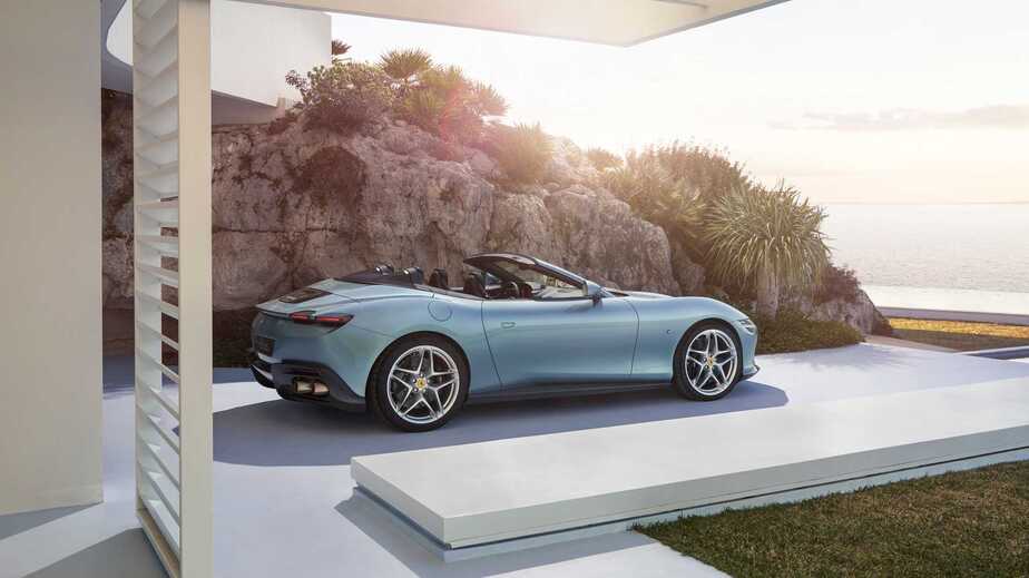 همچنین امکان شخصی سازی در پارچه سقف و دوخت متضاد برای مشتریان در نظر گرفته شده است. یک بادگیر پشت صندلیها نیز قرار دارد که هنگام بازبودن سقف، کیفیت سواری یک اسپایدر در کابین را تضمین میکند. قلب تپنده فراری در مدل روما برابر با ۶۱۲ اسب بخار خروجی و ۷۶۰ نیوتن متر گشتاور دارد. پیشرانه ۳.۹ لیتری توربودوقلوی ۸ سیلندر با جعبه دنده ۸ سرعته اتوماتیک دو کلاچه هماهنگ شده است.