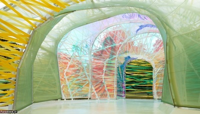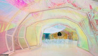 آنها میگویند: «هر ورودی یک تجربه جدید را ممکن میسازد. هر بخش با شکلها و نور و رنگ متفاوت طراحی شده است. در واقع دو لایه پلاستیک فلورین کار شده که یکی شفاف و دیگری غیر شفاف است.»