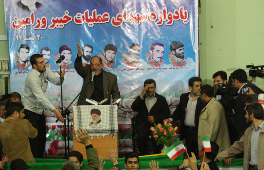 محمود احمدی نژاد که به دعوت ستاد یادواره شهدای خیبر و به منظور سخنرانی در این یادواره، پنجشنبه ۲۰ اسفند ماه به ورامین سفر کرده بود پس از نماز مغرب و عشاء در جمع هزاران نفر از مردم ورامین به سخنرانی پرداخت.