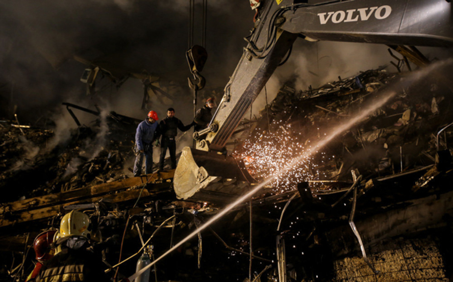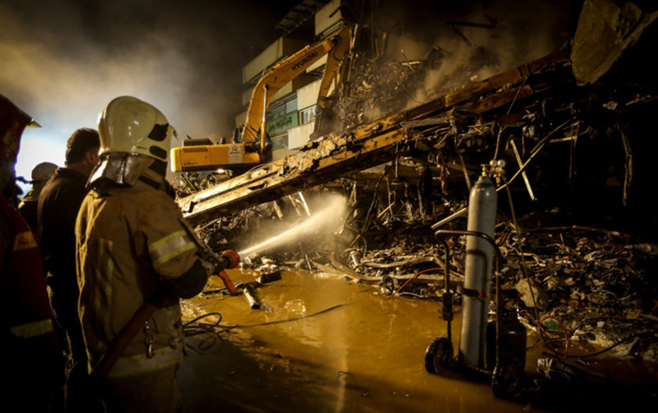 ساختمان مجاور مجتمع پلاسکو شب گذشته برای امدادرسانی بهتر به سانحهدیدگان توسط آتشنشانی تخریب شد. بخشهایی از ساختمان مجاور مجتمع پلاسکو توسط آتشنشانی برای امدادرسانی بهتر به آتشنشانان زیر آوار مانده تخریب شد. این ساختمان در ضلع شرقی پلاسکو مستقر بود. عکاس: محمد محسنی فرد/ مهر