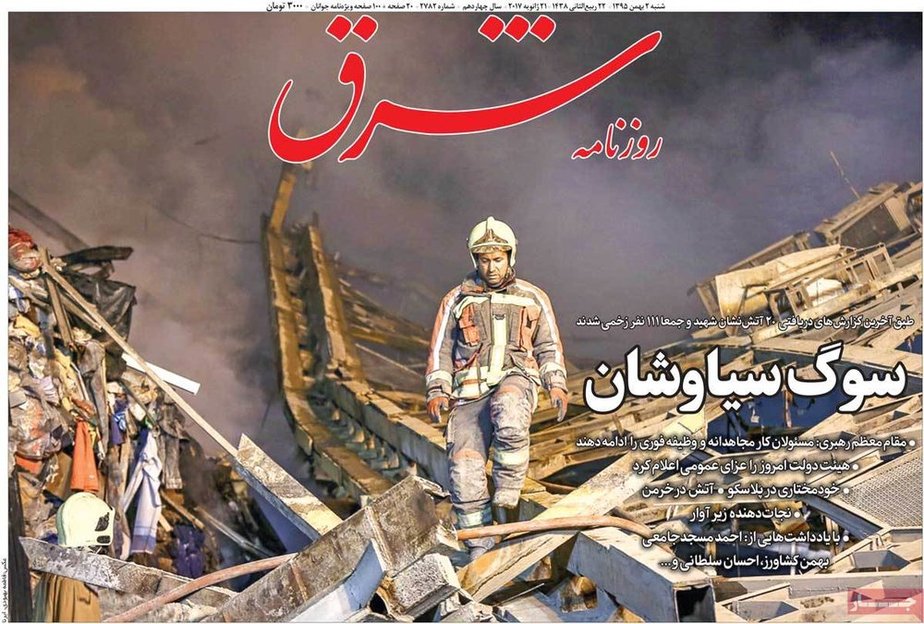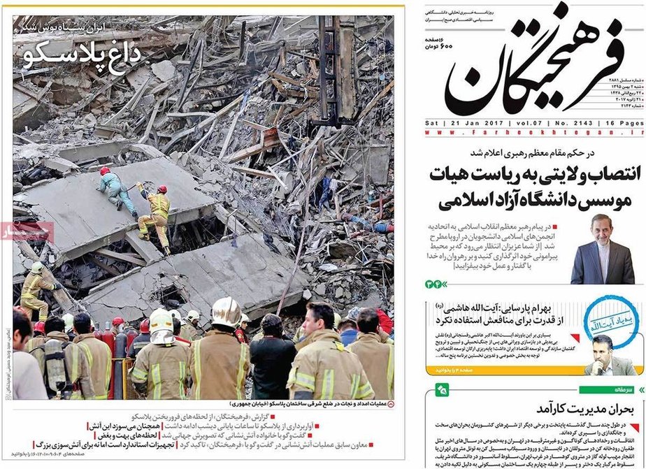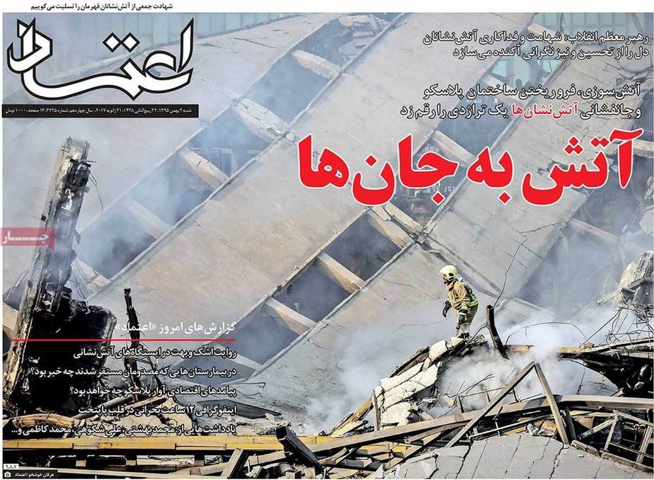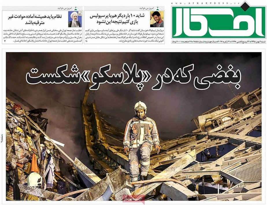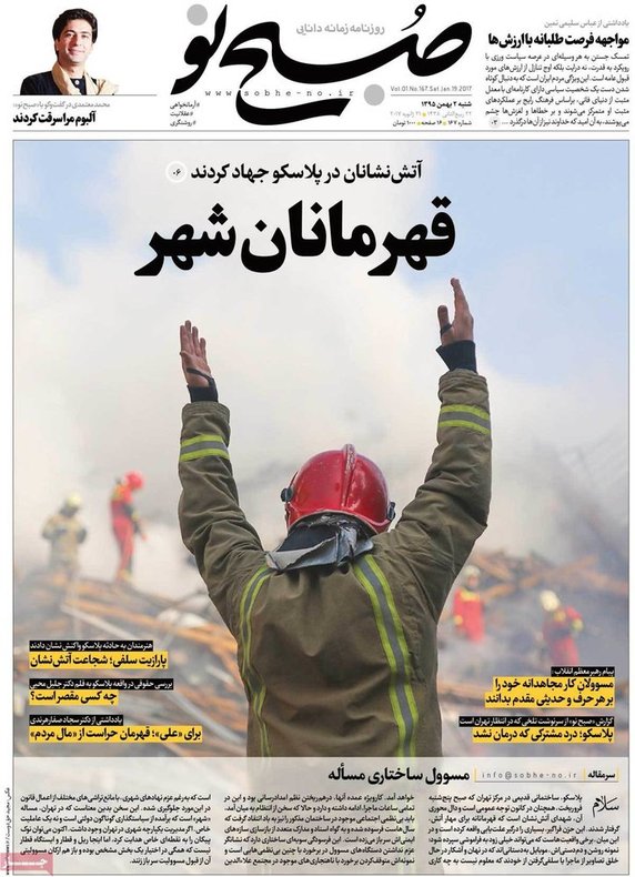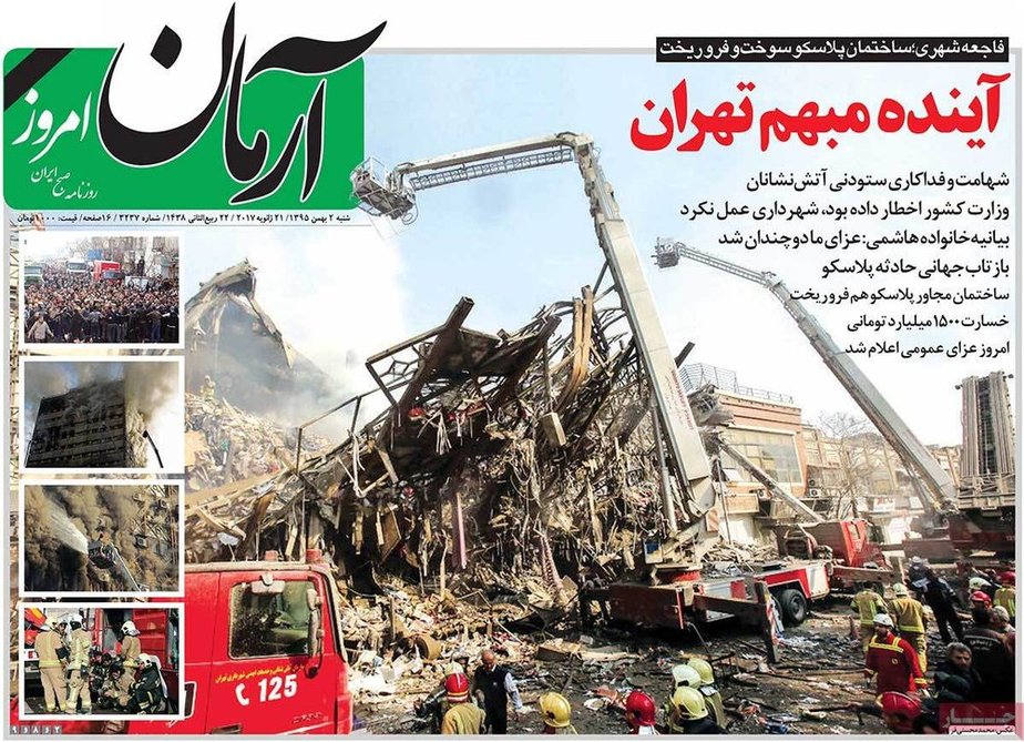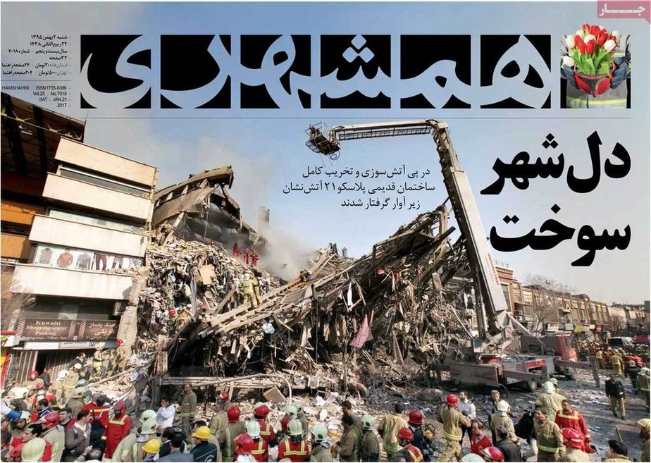 فرادید | صبح روز پنجشنبه آتش به جان پلاسکوی پیر افتاد و قبل از صلاة ظهر، تاروپود پلاسکو از هم پاشید. اکنون تهران یکی از نمادهای قدیمی خود را از دست داده و تلی از خاک و خاکستر به جا مانده است. تقریبا همه روزنامه های امروز فاجعه پلاسکو را به صورت ویژه پوشش داده اند، که در ادامه می بینیم: