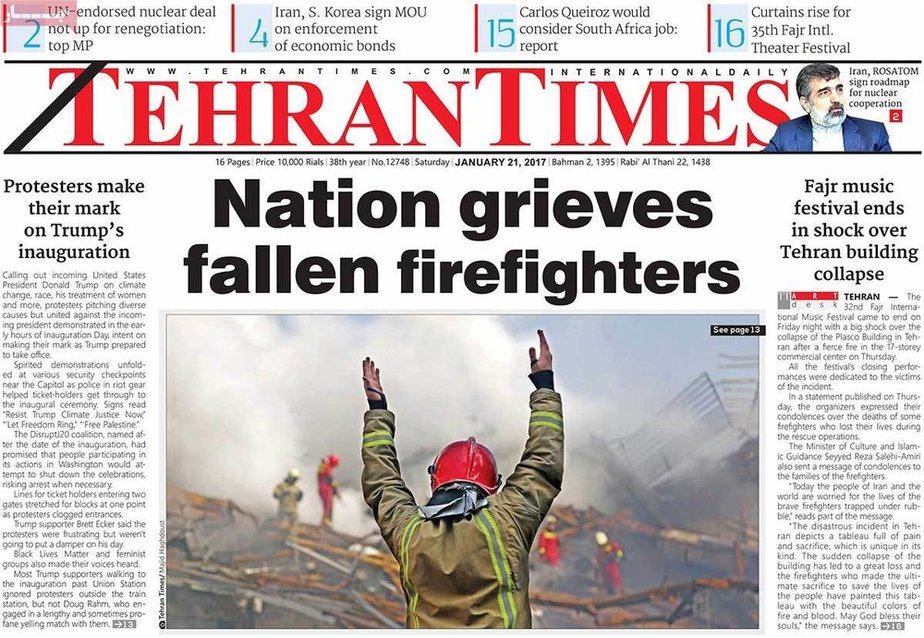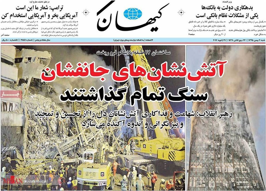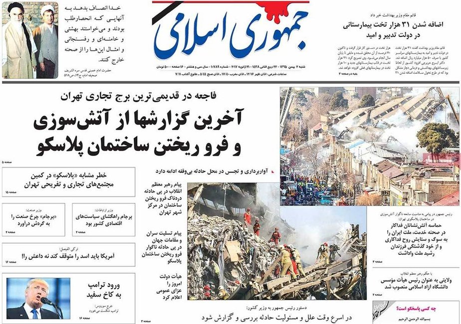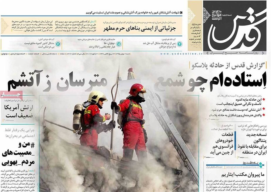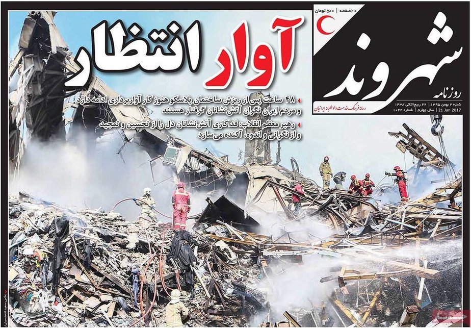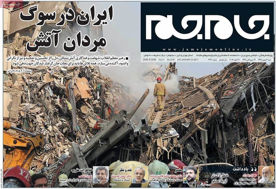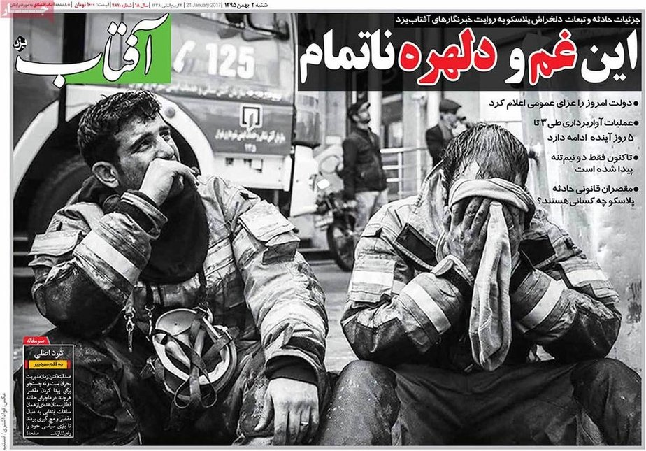 فرادید | صبح روز پنجشنبه آتش به جان پلاسکوی پیر افتاد و قبل از صلاة ظهر، تاروپود پلاسکو از هم پاشید. اکنون تهران یکی از نمادهای قدیمی خود را از دست داده و تلی از خاک و خاکستر به جا مانده است. تقریبا همه روزنامه های امروز فاجعه پلاسکو را به صورت ویژه پوشش داده اند، که در ادامه می بینیم: