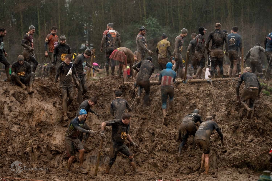 اگر راستش را بخواهید، این مسابقه نوعی ماجراجوییِ همراه با شکنجه است. مسابقه با دوی با مانع شروع میشود. انواع موانع وجود دارد که برخی واقعا شخص را اذیت میکند. یکی از بخشهای جذابش برای من، کلبهی بزرگی بود که در آن شرکت کنندگان باید از زیر کلبه عبور میکردند. داخل کلبه بسیار تاریک بود و بر روی سقفش نیز از حصارهای الکتریکی مانند موانع مسابقات اسب سواری استفاده شده بود. افراد باید در تاریکی و از میان گل و لای راه خودشان را پیدا میکردند و همزمان شوک خفیف الکتریکی را نیز تحمل میکردند. آنها برای همین تجربه پول میدهند؛ برخی هر سال شرکت میکنند.