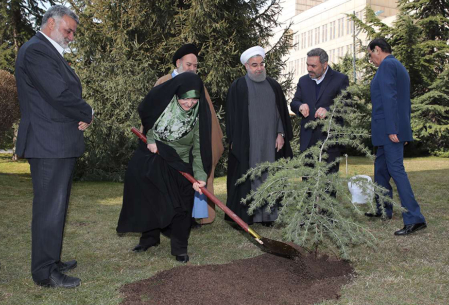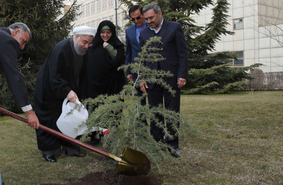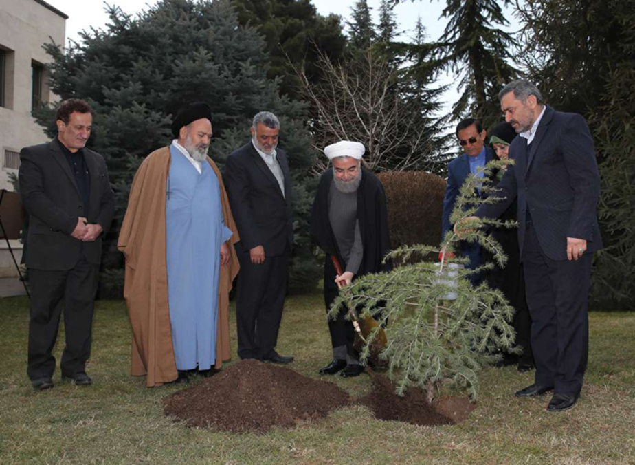غرس نهال به مناسبت گرامیداشت هفته منابع طبیعی و روز درختکاری روز یکشنبه با کاشت نهالی با دستان حسن روحانی رئیس جمهوری اسلامی ایران در حافظیه مجموعه تاریخی-فرهنگی سعد آباد انجام شد. عکس: پایگاه اطلاع رسانی ریاست جمهوری