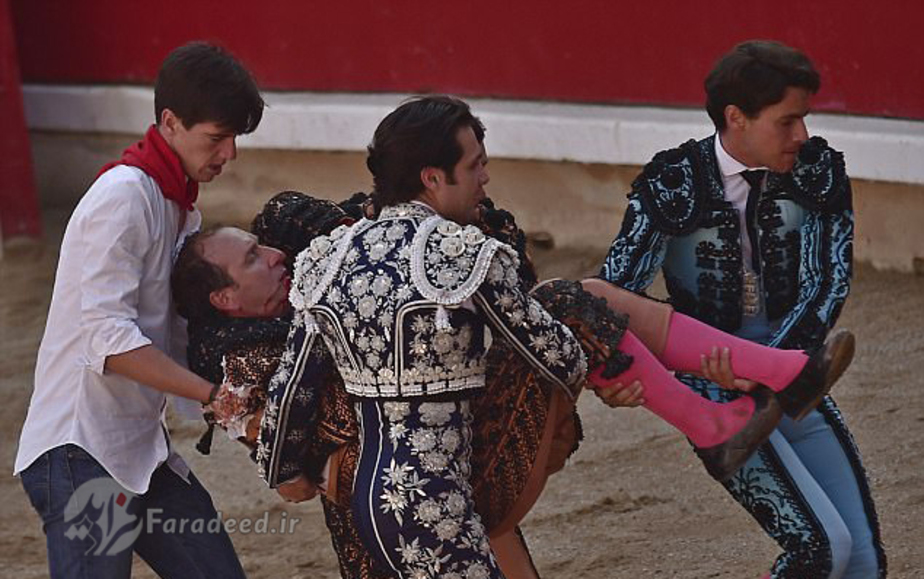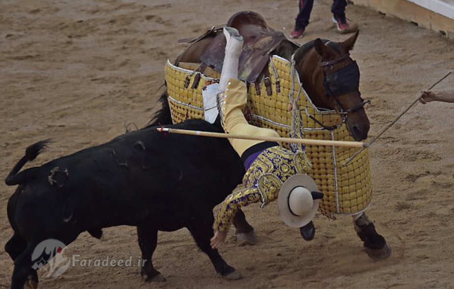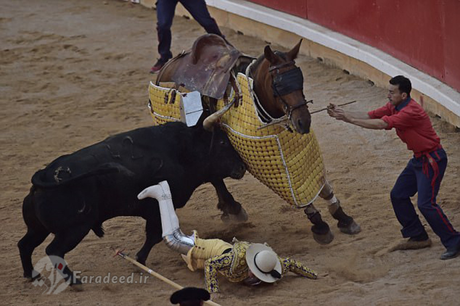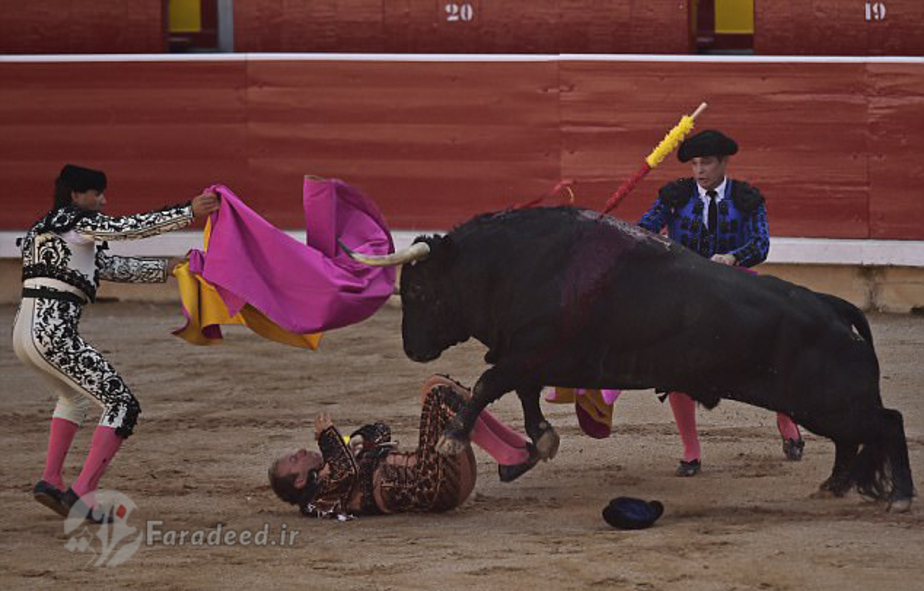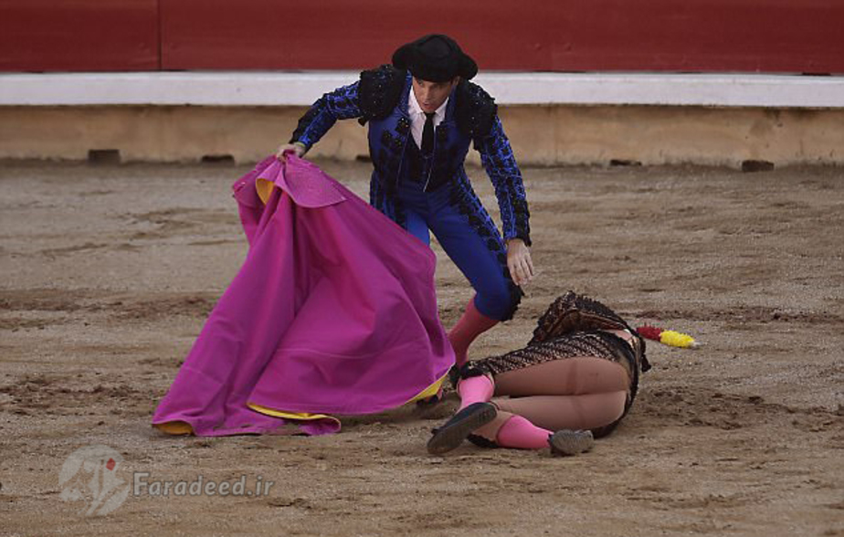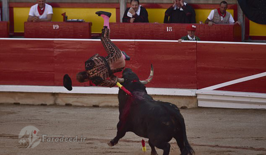 تصاویر/ مجروح شدن گاوباز در میدان نبرد