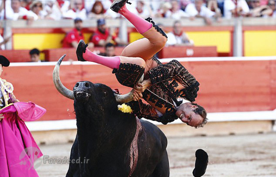 فرادید | گاوباز اسپانیایی در جریان فستیوال سالانه گاوبازی در "پامپلونا" هدف شاخ های گاو خشمگین قرار گرفت و مجروح شد.