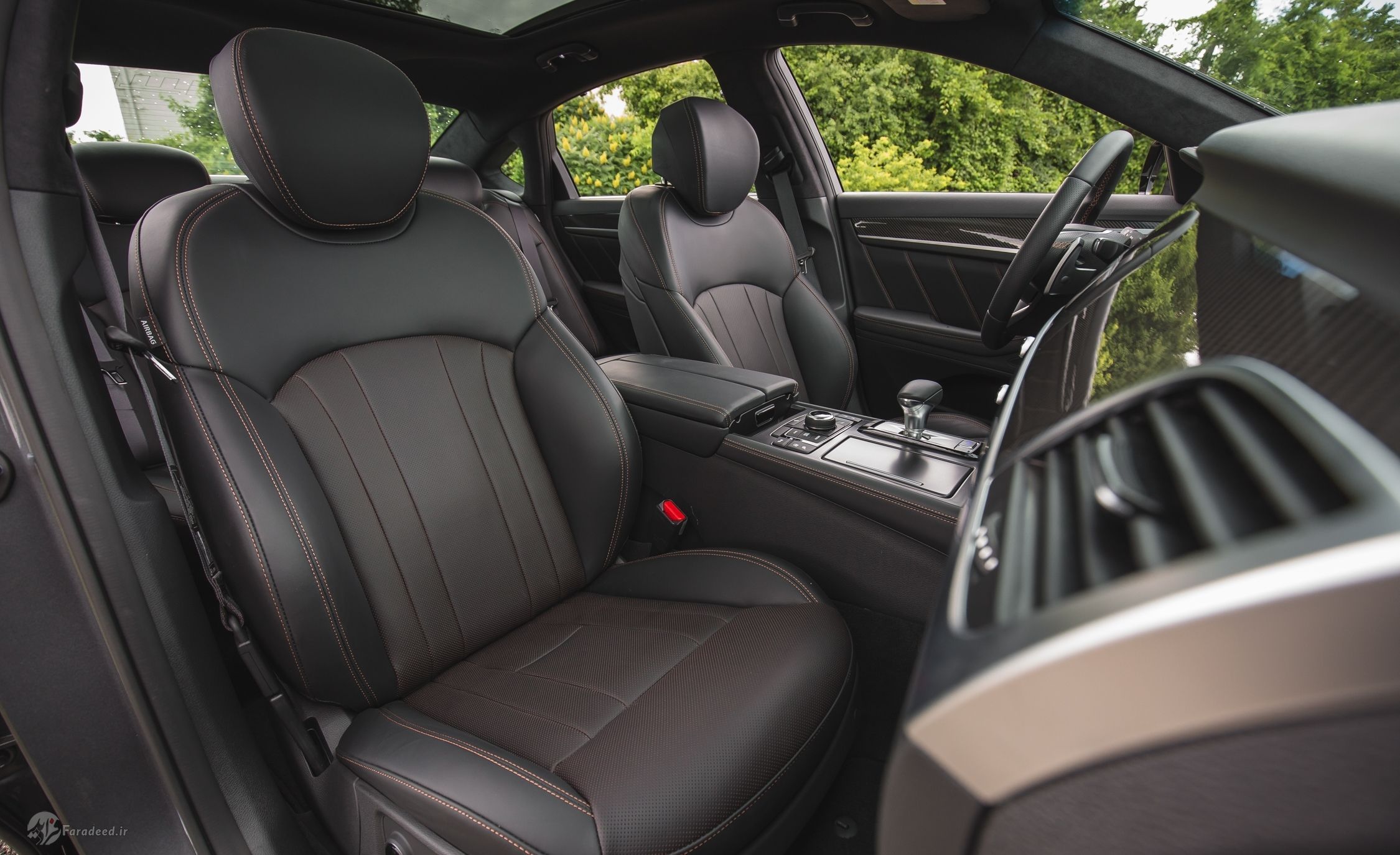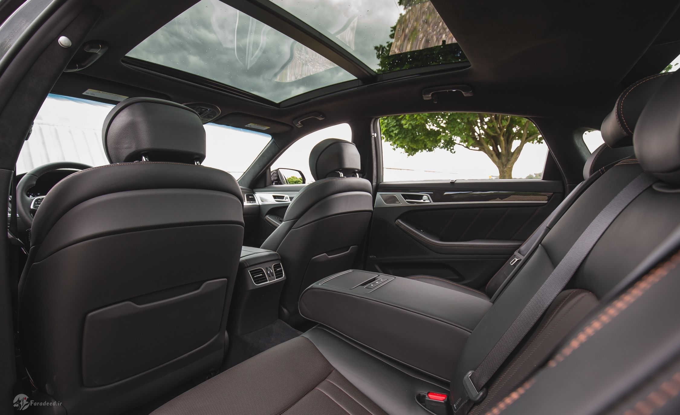 فضای داخلی جنسیس با فاصله بین دو محور 3 متر واقعا ایده آل است. در واقع هیوندای به لطف مهندسی دقیق خود توانسته بزرگ ترین کابین را در این کلاس به خریداران ارائه کند که نکته مهمی است. در عین حال حسن این فضای بزرگ، با کم دقتی در زمینه نصب تزئینات لوکس از قبیل چوب و کروم رنگ باخته است. سیستم تعلیق خودرو کارایی خوبی داشته و به لطف تجهیز به رینگ های زیبا و لاستیک های 19 اینچی مارک کانتیننتال، فضایی دلنشین را برای این سدان لوکس ورزشی فراهم کرده اند. نکته جالب درباره صندلی های جلو حس خوبی است که منتقل می کند و نشان از تفاوتی محسوس در مقایسه با نسل اول جنسیس است.